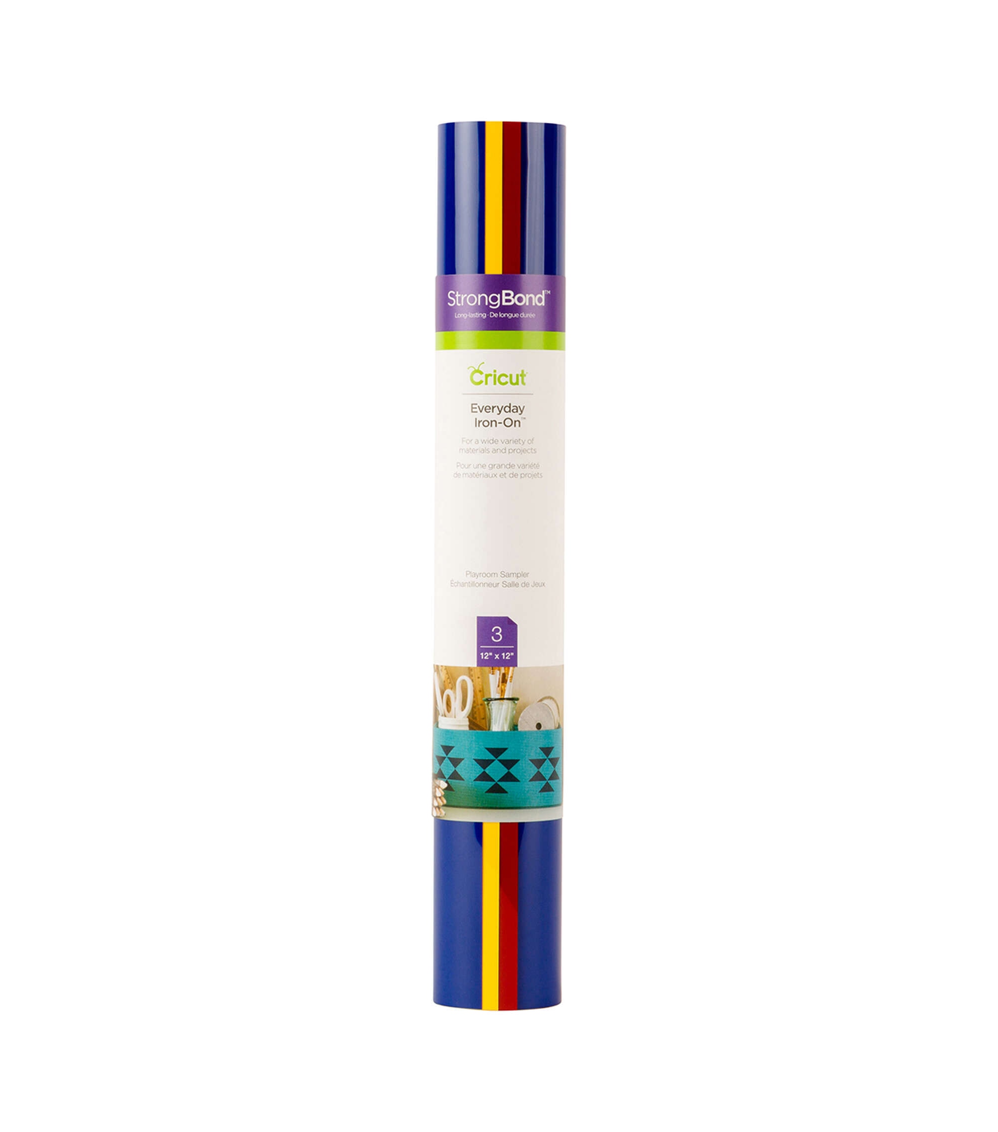 Use this Cricut Everyday Iron-On Sampler-Playroom with your Cricut machine to cut complex designs and you’ll weed with ease for a flawless application. It outlasts 50 washes and is compatible with a huge breadth of base materials, including wood. From terrific T-shirts to heartwarming home decor, amazing accessories to handmade presents, this heat transfer material is your go-to for almost any iron-on idea. Use a single color or layer up to three to create one-of-a-kind patterns and projects. For a flawless iron-on application, use Cricut EasyPress, sold separately. This pack contains iron-on vinyl in three fun colors.