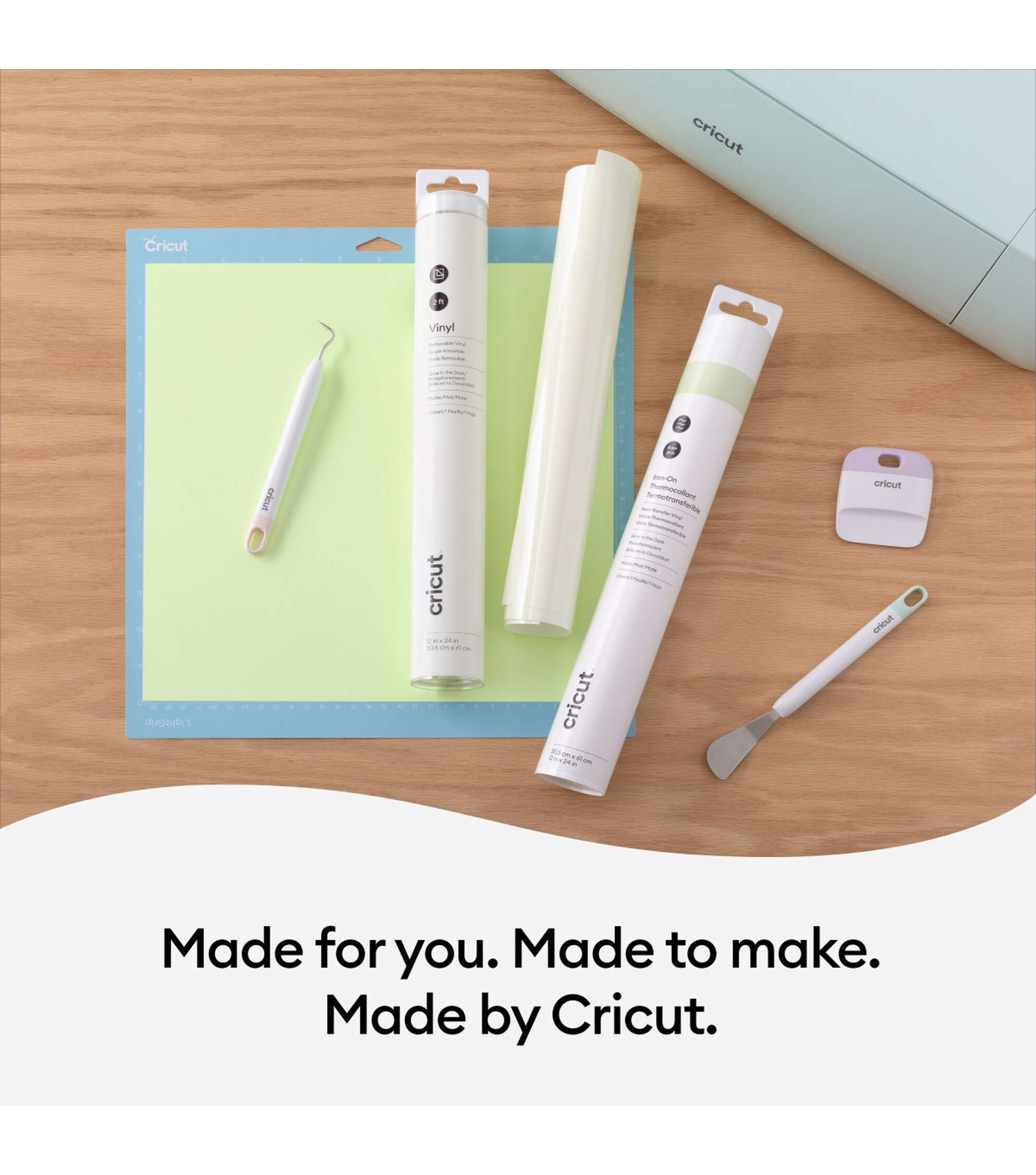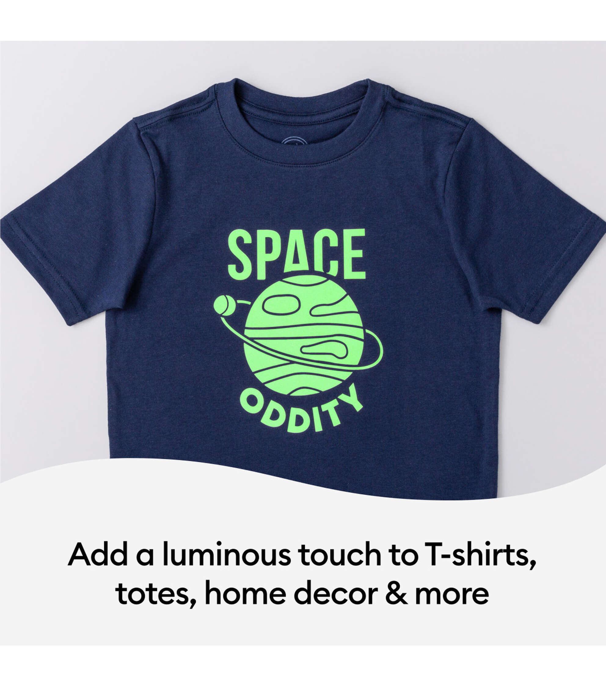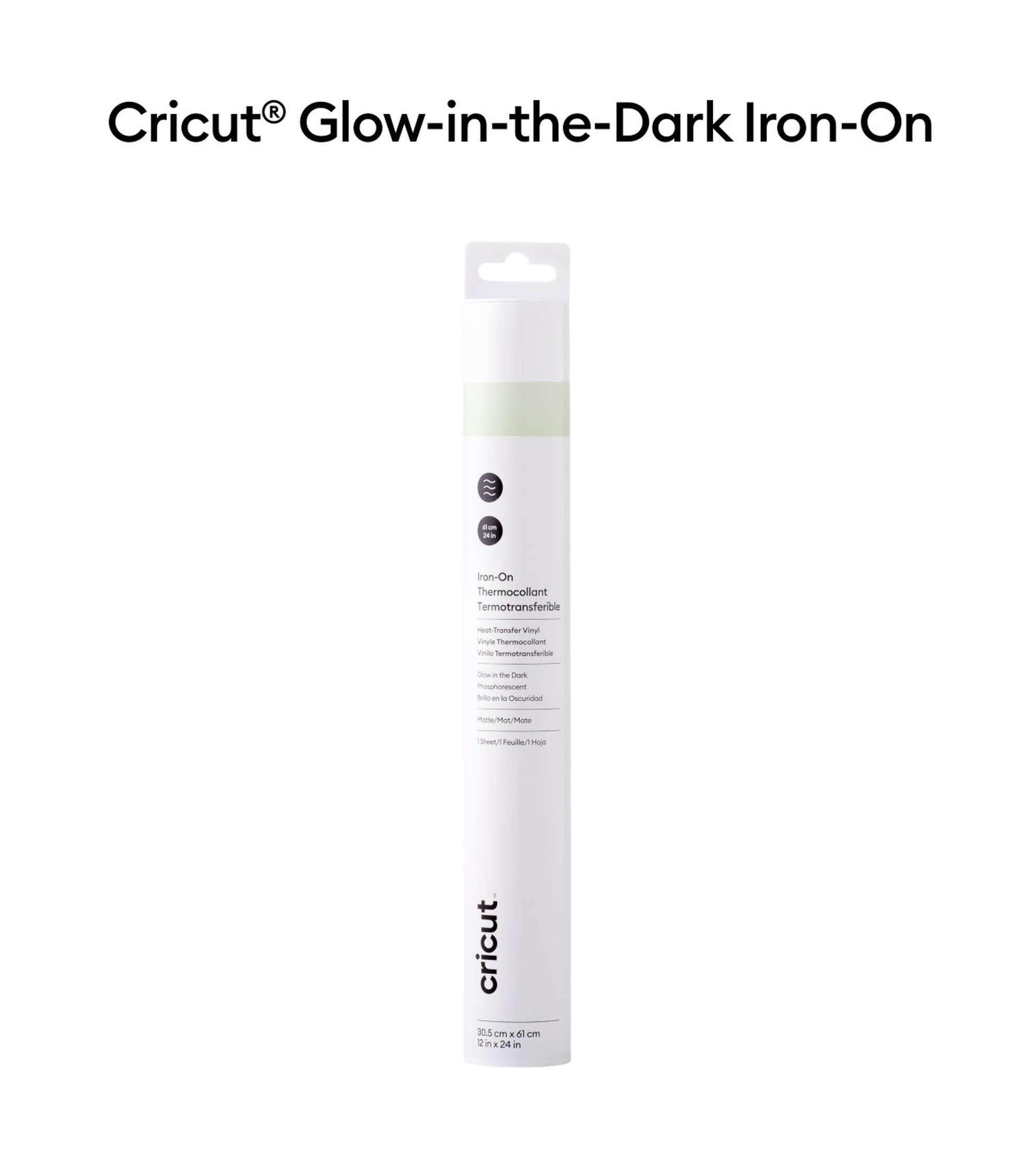 With Cricut Glow-in-the-Dark Iron-On, brightening up a T-shirt or making a costume in minutes is a breeze. This heat-transfer vinyl works well on a wide variety of materials for long-lasting, high-impact results. It also outlasts repeated washing without fading, peeling, or cracking. For use with all Cricut cutting machines. For effortless application, use Cricut EasyPress or apply with household iron. Care Instructions • Allow 24 hours after application before washing. • Wash and tumble dry inside out. • Do not bleach. • If you need to iron, only iron on the backside of the garment.