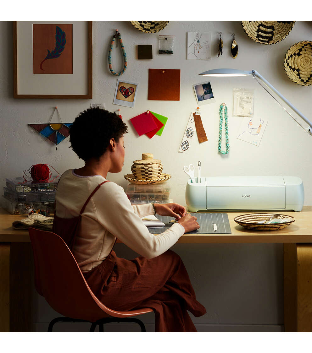 See your projects in a whole new light with Cricut Bright 360, the ultimate LED table lamp. Its large, broad head evenly lights up your entire workspace. With a gentle push of the hand, the lamp pivots, rotates, and easily glides into the just-right position for every craft. Whether you’re working on a delicate accent piece or searching for the perfect matching shade, you’ll see colors and details with exceptional clarity. A high 95 CRI (Color Rendering Index) means your colors will appear more accurately than with a traditional bulb. Use the sleek sliders to adjust brightness (up to 1500 lux) as well as light color temperature (warm to cool white) to cast ideal light in any space. Comfortably see every detail with less glare, hotspots, and eye strain. From mid-craft to final project photos, Cricut Bright 360 shines light your way.