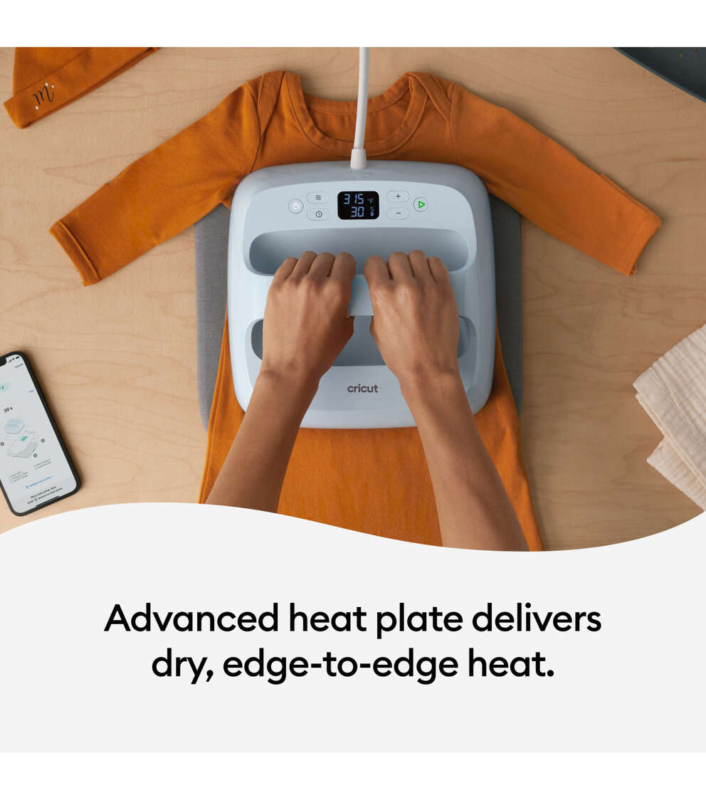 Now with Bluetooth wireless technology built in, the world’s most beloved heat press just got smarter. Simply connect Cricut EasyPress 3 to the Cricut Heat app to send precise time & temperature settings and get step-by-step guidance for every project. With super-fast heat-up up to 400℉ (205°C) and a ceramic-coated heat plate, Cricut EasyPress 3 combines the speed of a heat press with the convenience of an iron. Includes an insulated safety base and auto-off feature so you can press with peace of mind. Cricut EasyPress 3 is lightweight, portable, and easy to store. Compatible with Infusible Ink products and most brands of iron-on (HTV). A perfect companion to Cricut cutting machines. Product will not function until activated with Cricut Heat app and compatible internet-connected mobile device.