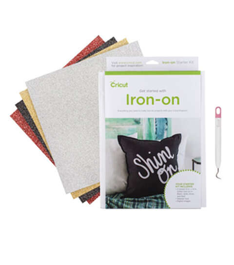 Use the Cricut Iron-on Starter Kit to create one-of-a-kind projects for your loved ones. It’s a sampler of iron-on sheets in black, red, silver and gold, as well as tools and instructions. You can create fun DIY decor projects, crafts and lots more with this iron-on kit, and your Cricut Explore cutting machine, sold separately.
