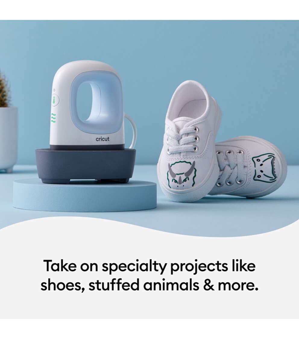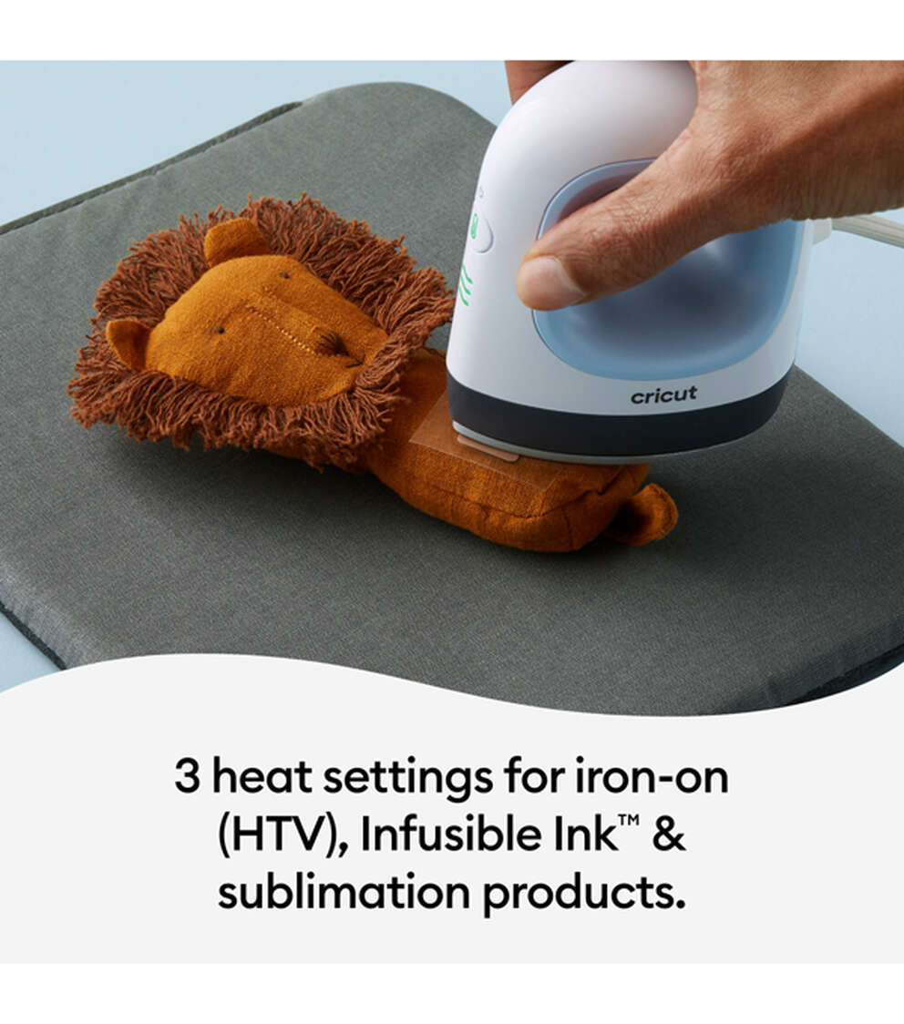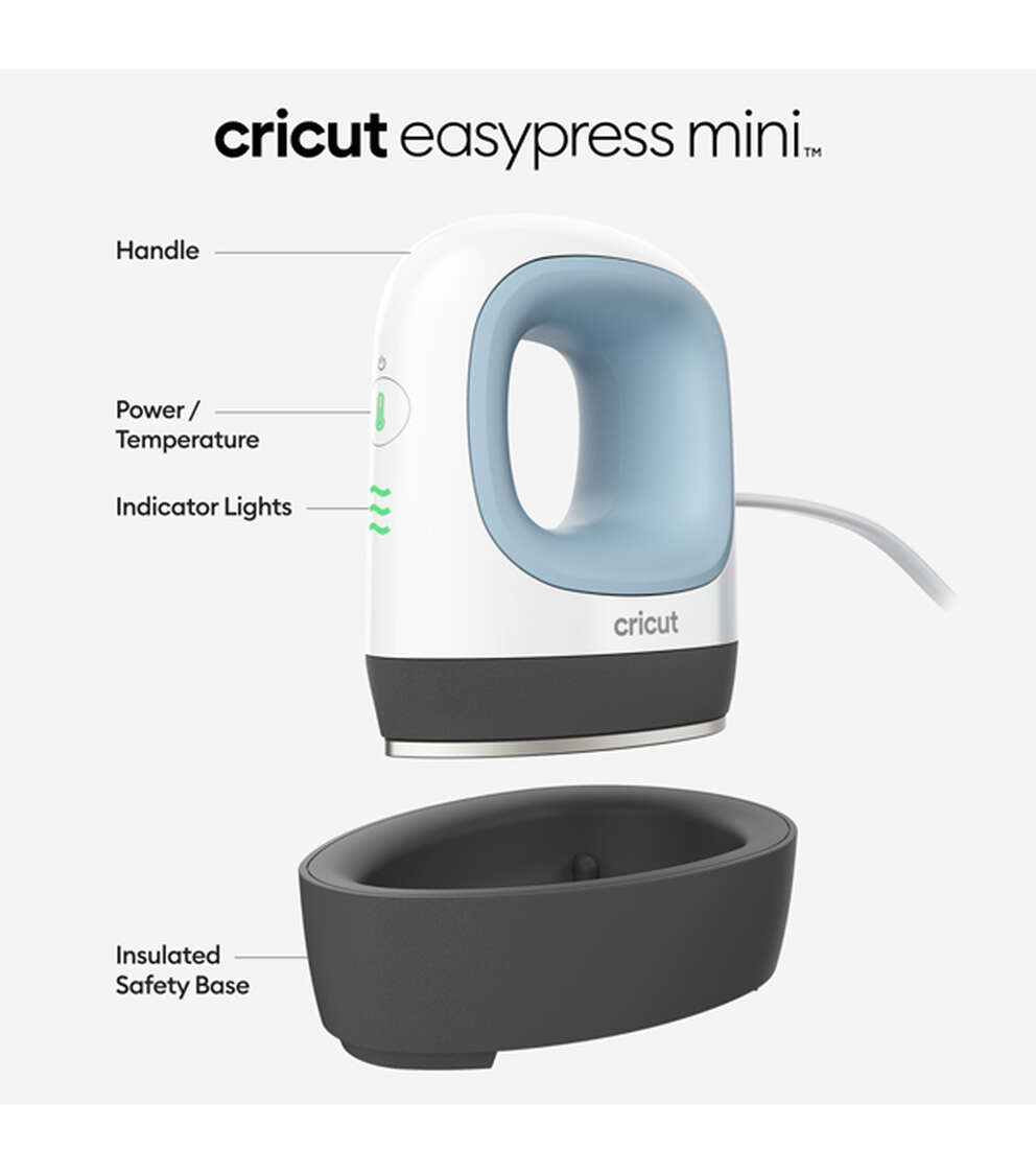 Unusual objects and improbable projects are no longer a challenge! With its thoughtful, compact design, Cricut EasyPress Mini makes wow-worthy heat-transfer results possible for even your most uniquely shaped objects and projects. Curve with contours, get between buttons, and squeeze into seams — transfer onto shoes, stuffed animals, and more. Three simple heat settings take on every possible heat-transfer project, including Infusible Ink transfers. With an extra layer of protection on its ceramic-coated heat plate, Cricut EasyPress Mini effortlessly glides over oddly shaped surfaces to transfer your design. Safety features include an insulated base and an auto-shutoff feature. It’s lightweight, portable, easy to store, and compatible with major brands of HTV, iron-on, and the entire Infusible Ink family of products. It’s a perfect compliment to any Cricut cutting machine or larger Cricut heat press