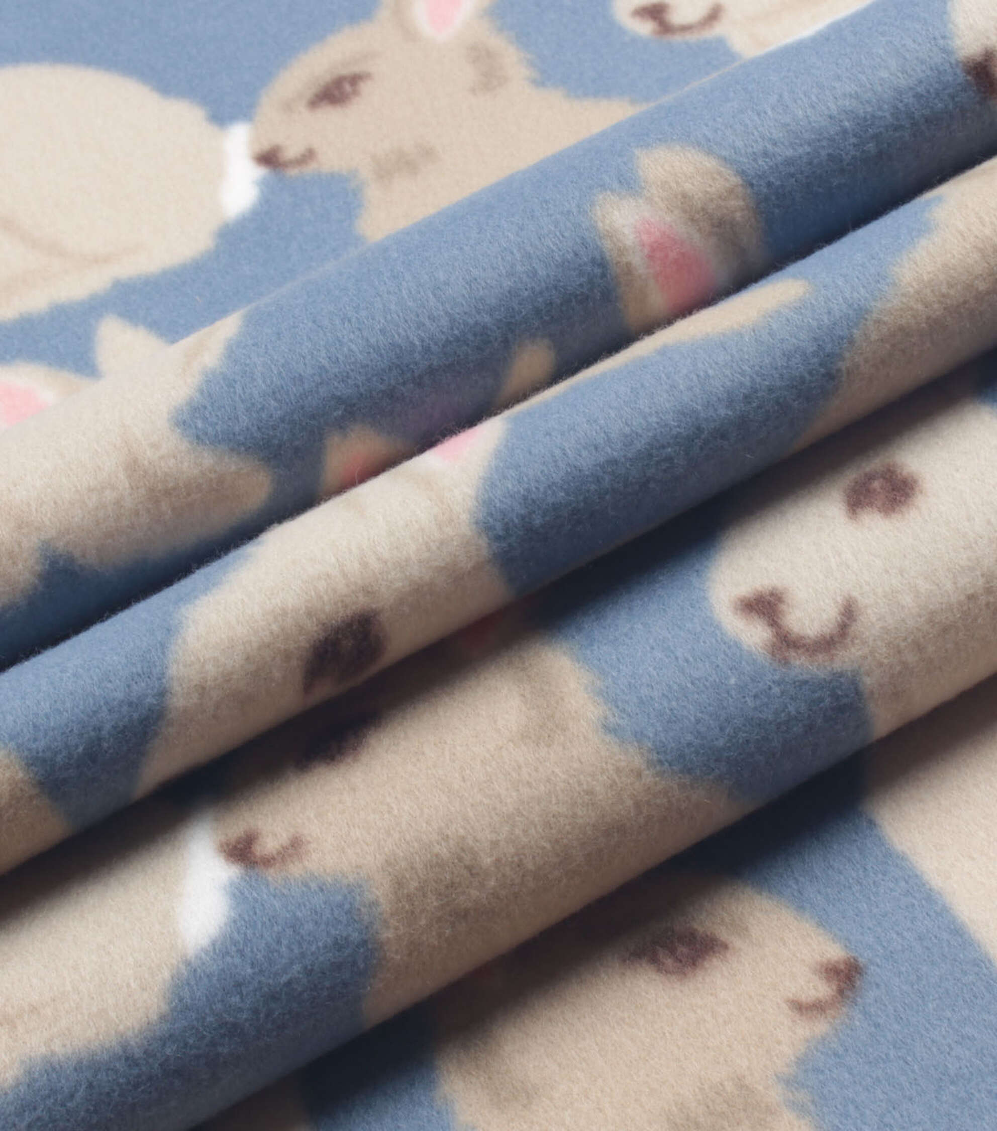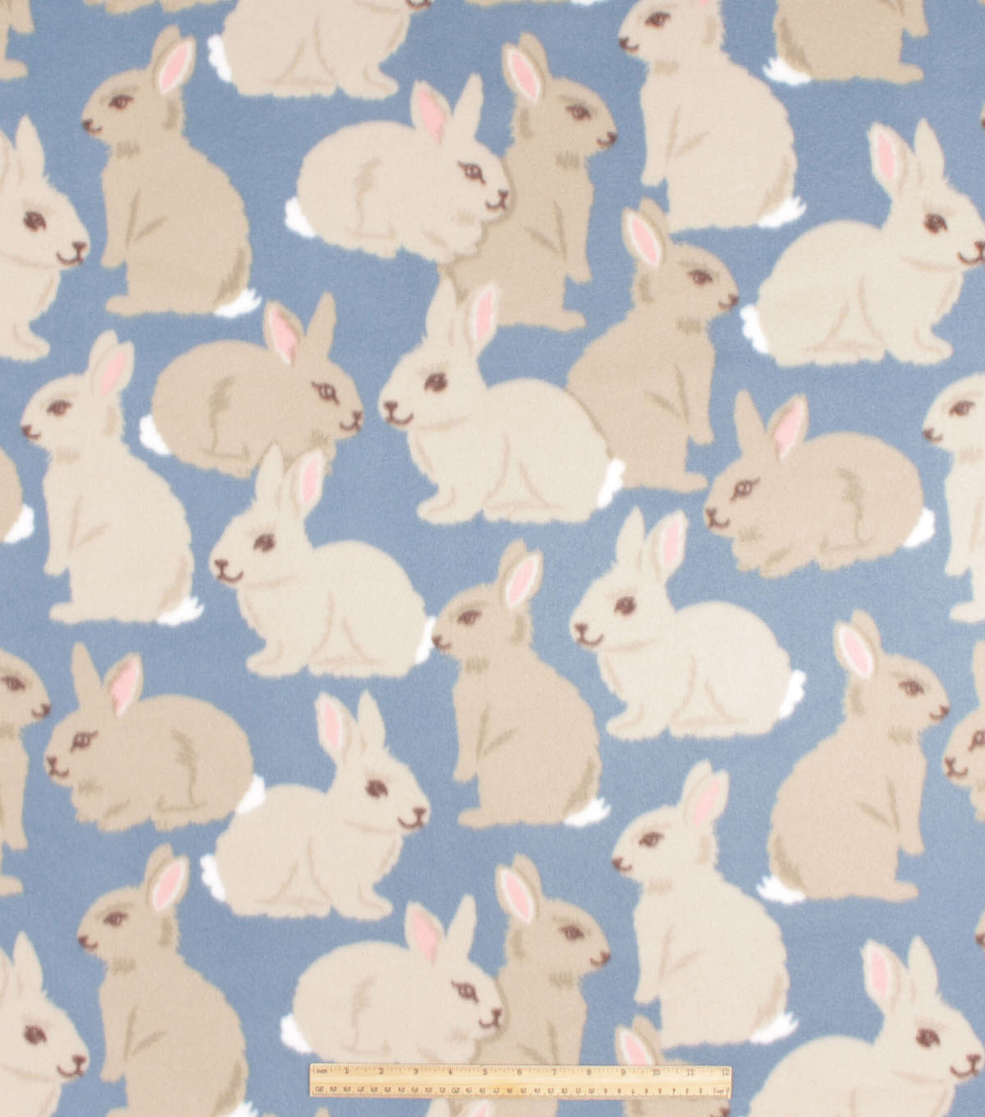 Adorable Bunnies on Blue Blizzard Fleece Fabric for Your Next DIY Project