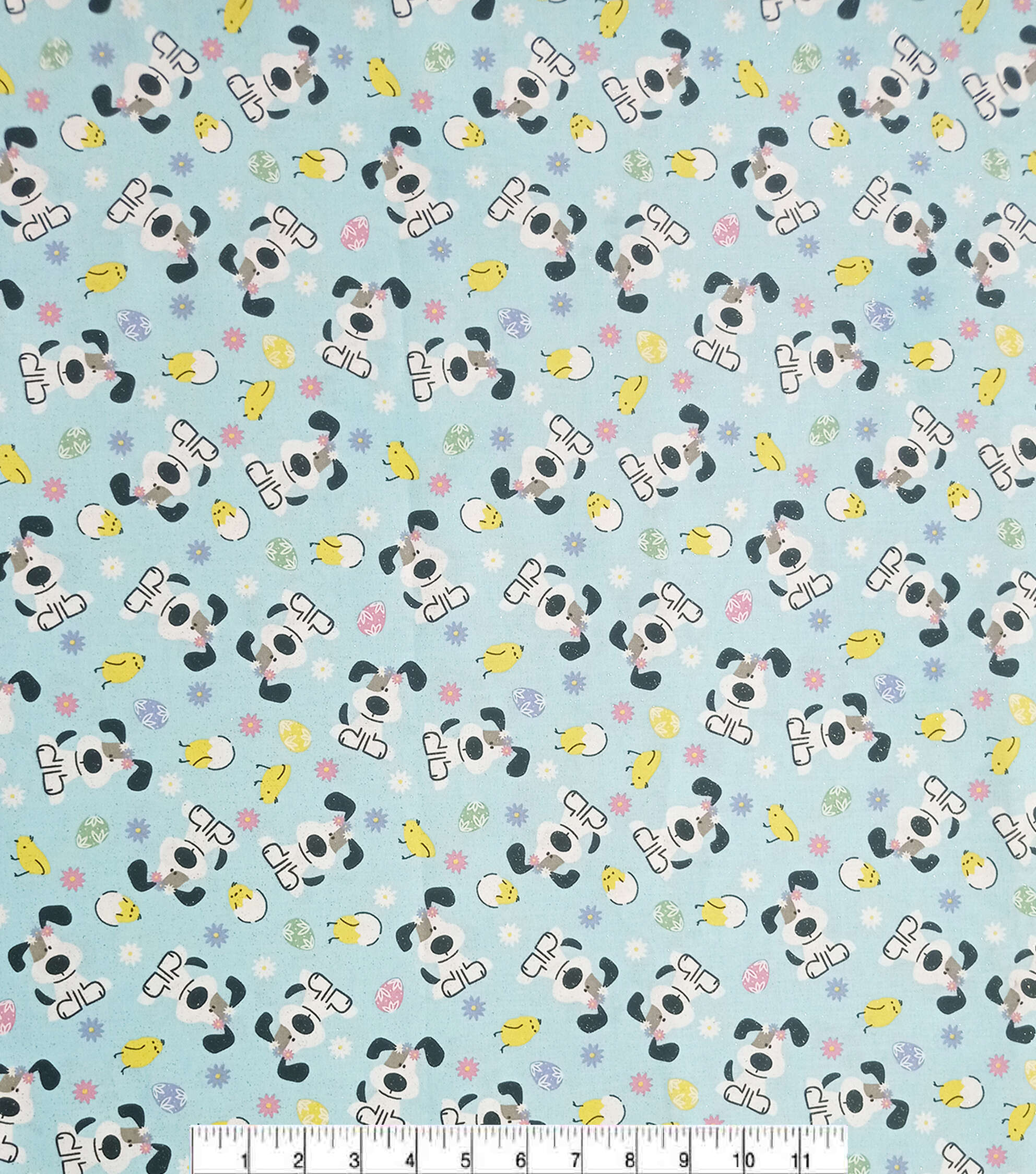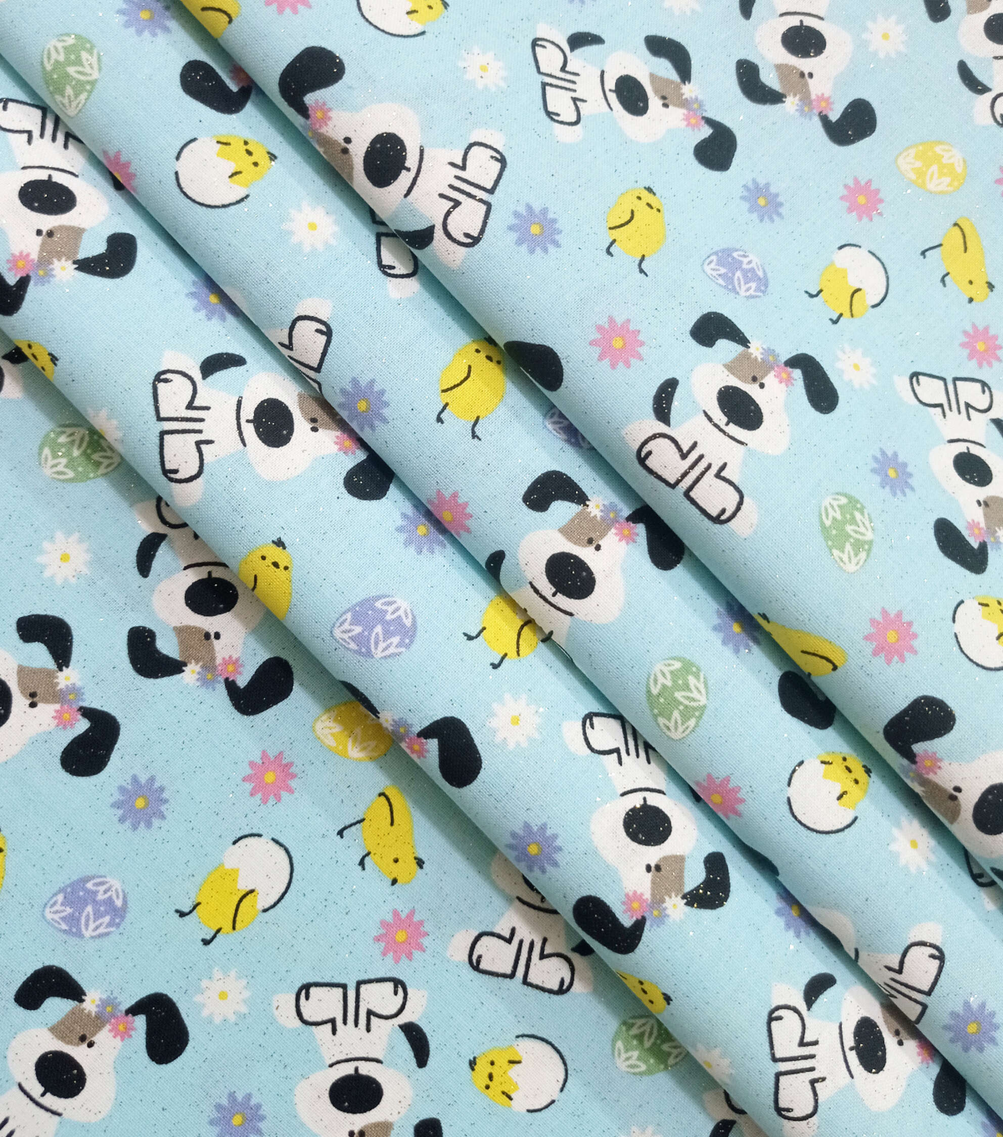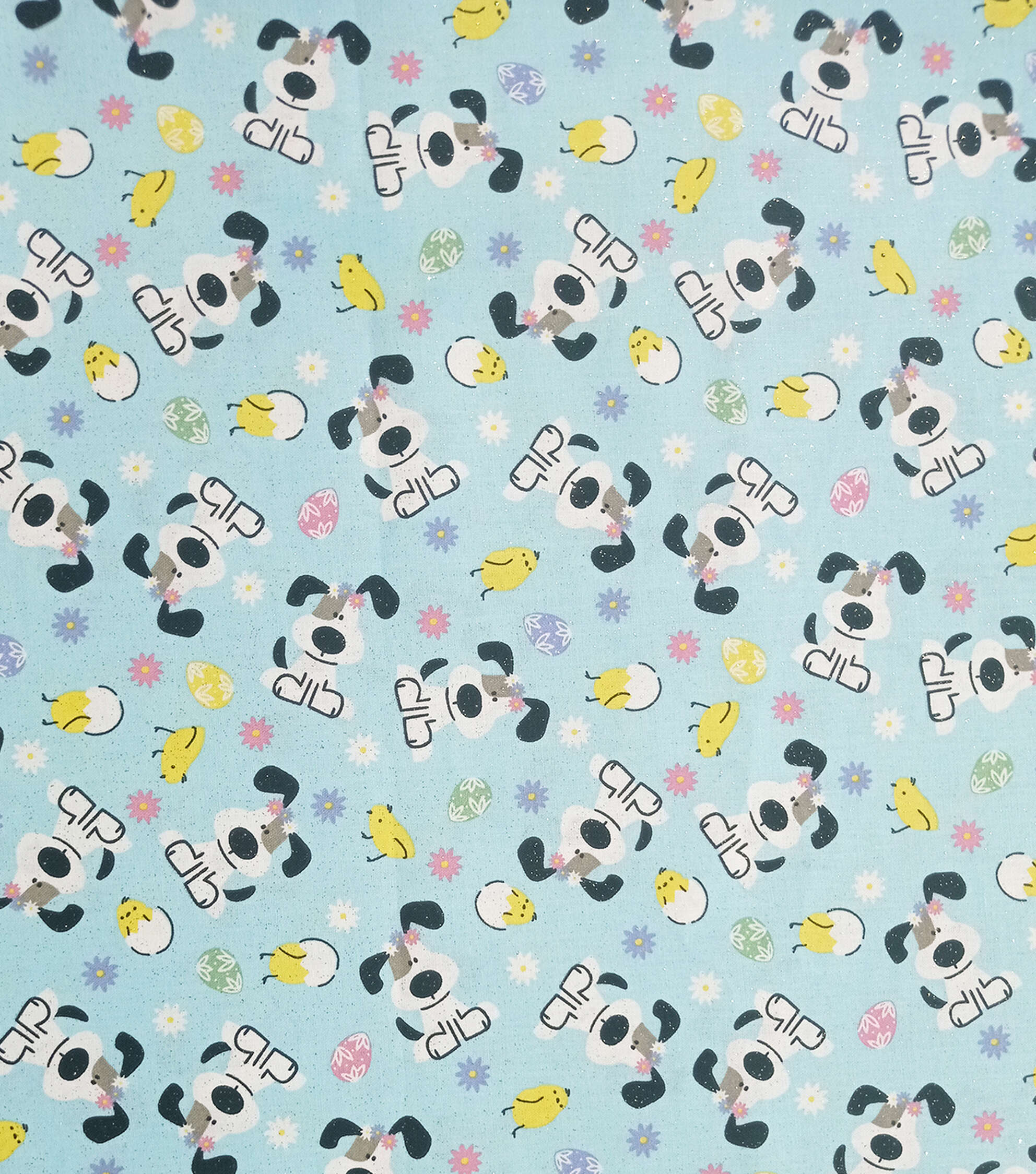 Get Creative with this Adorable Dog on Blue Easter Glitter Cotton Fabric