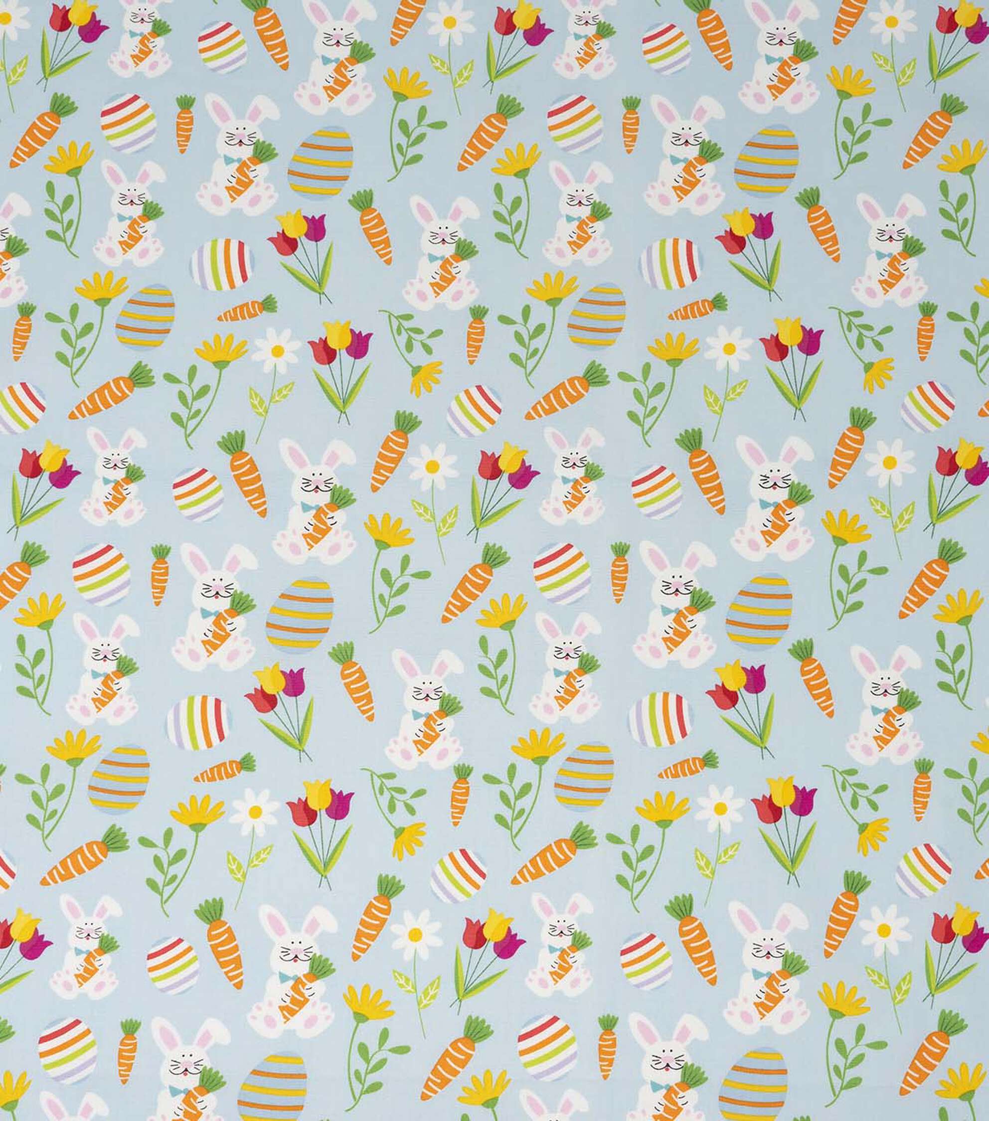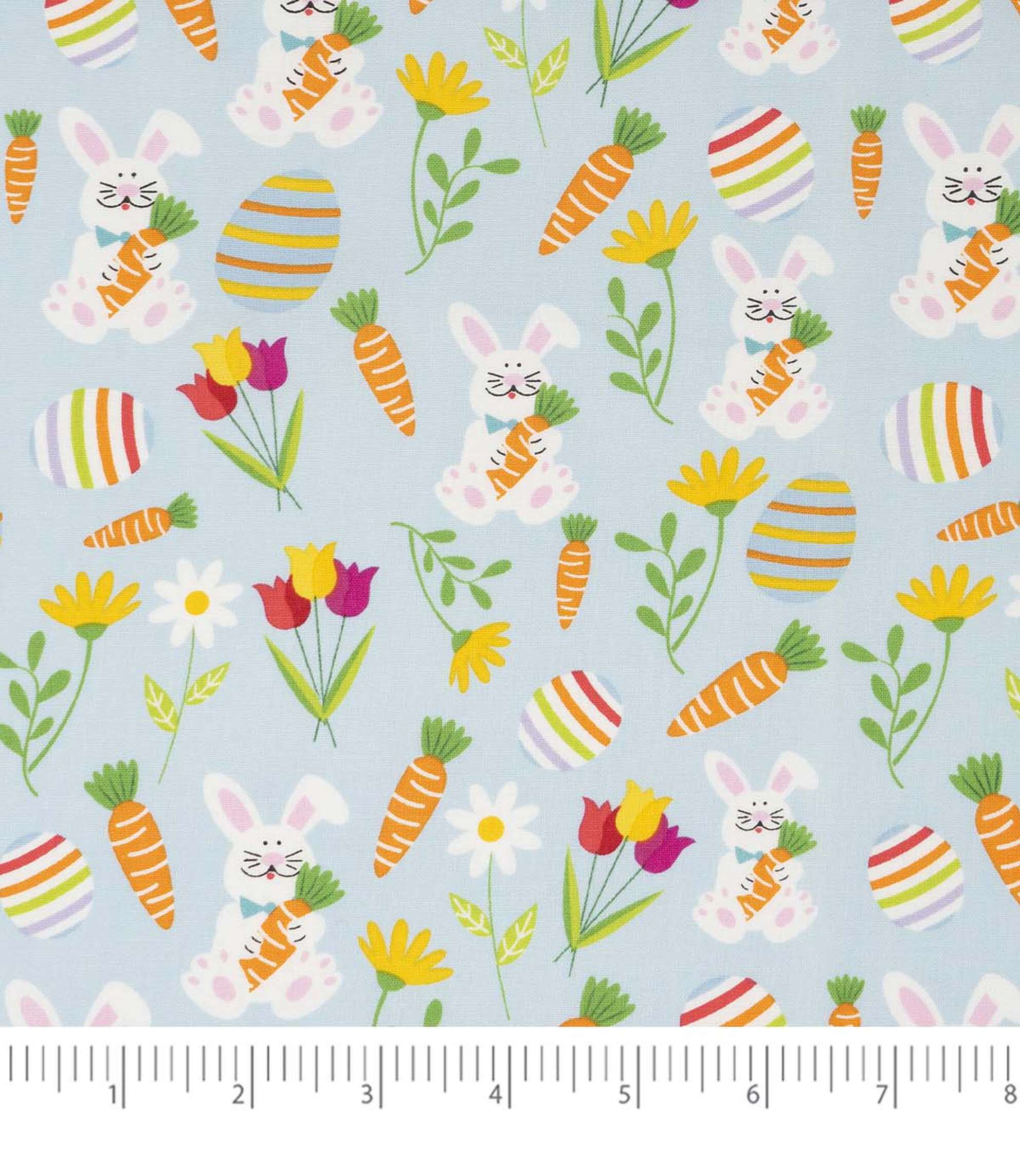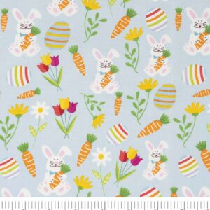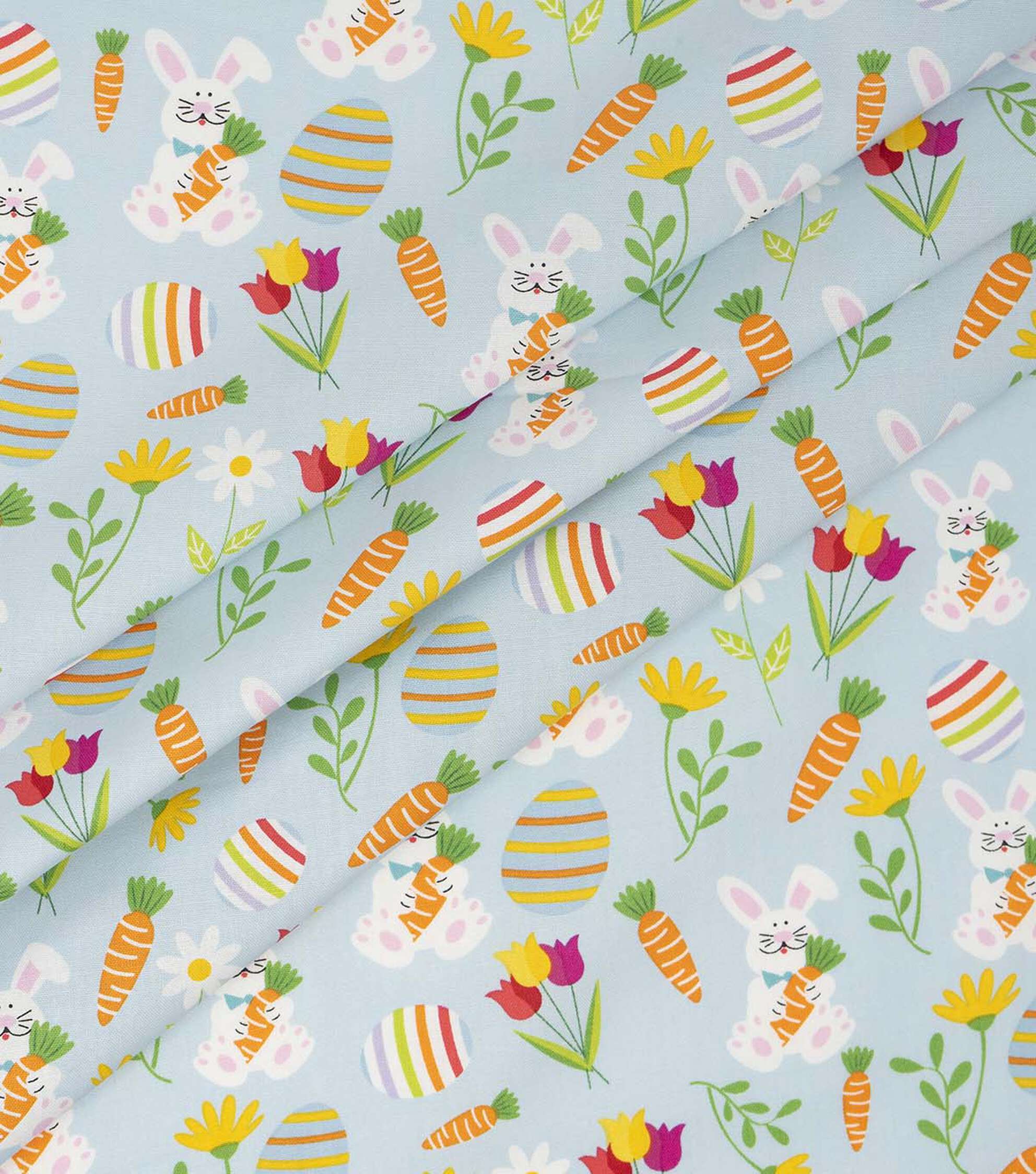 Get Ready for Easter with our Easter Bunnies & Carrots on Blue Fabric