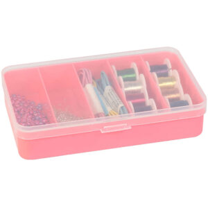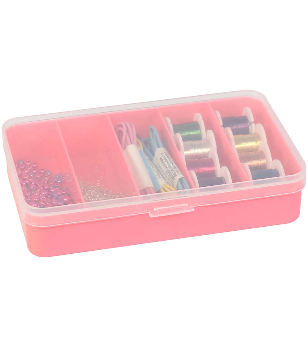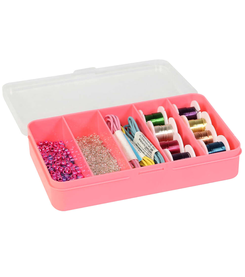 This durable plastic container has five compartments and comes in a subtle yet attractive shade. It sports a clear lid with lock to keep the contents secure.