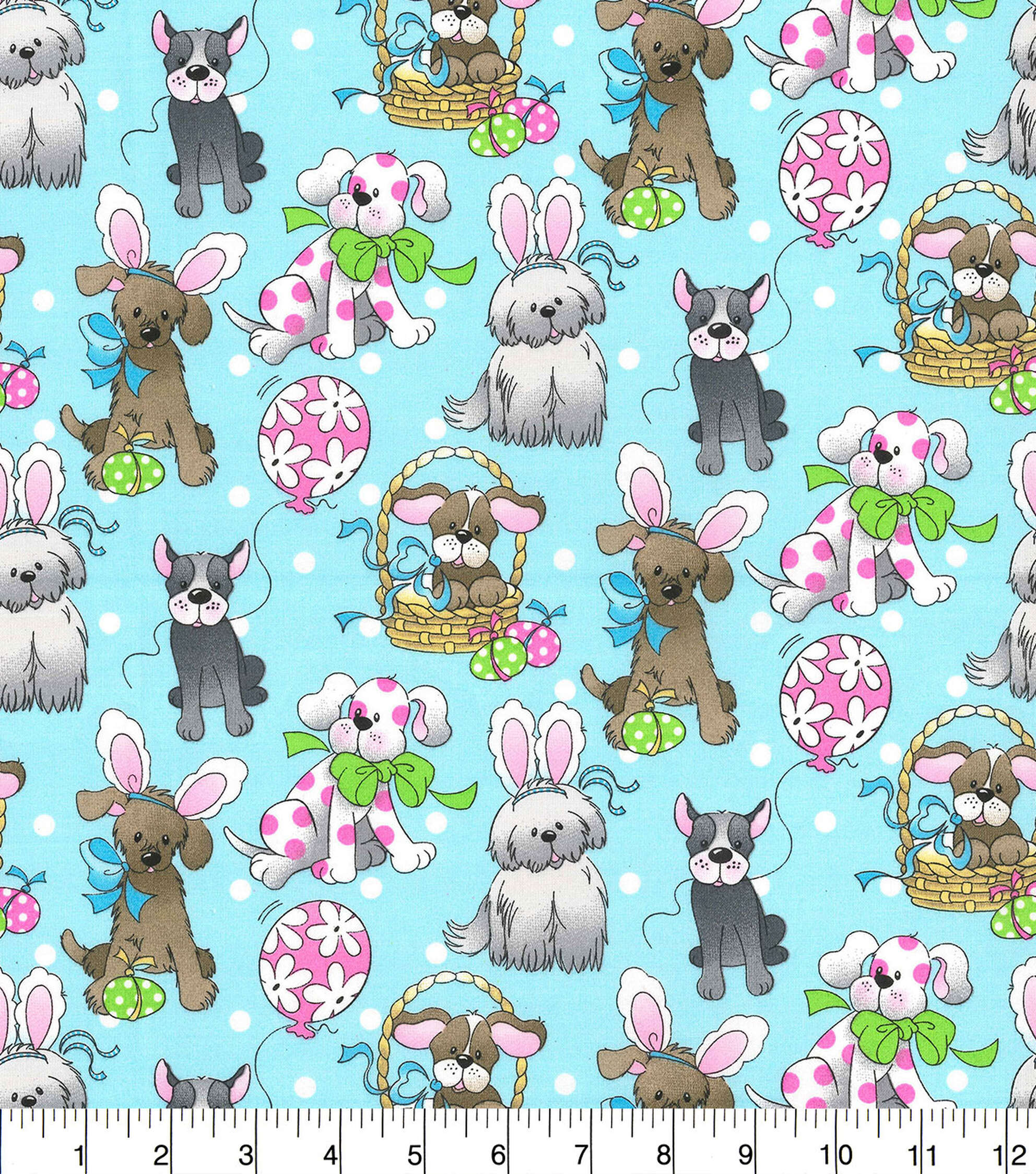 Fabric Traditions Spring Holiday Pups Blue Easter Cotton Fabric
