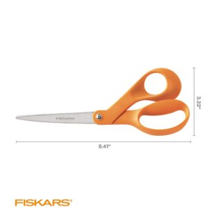 Known worldwide for its quality and precision, Fiskars trusted Original Orange-Handled Scissors has sold over 1 billion since 1967! Introduced to the world as a quality fabric scissors, the #1 selling Original Orange-Handled 8″ Scissors redefined the standard for cutting performance. High-grade, stainless steel blades feature a precision-ground edge that stays sharp longer and cuts all the way to the tip — essential for anyone who cuts fabric. A lightweight design and ergonomically sculpted handle provide unmatched cutting control, and a bent handle design keeps materials flat for precise cuts every time.