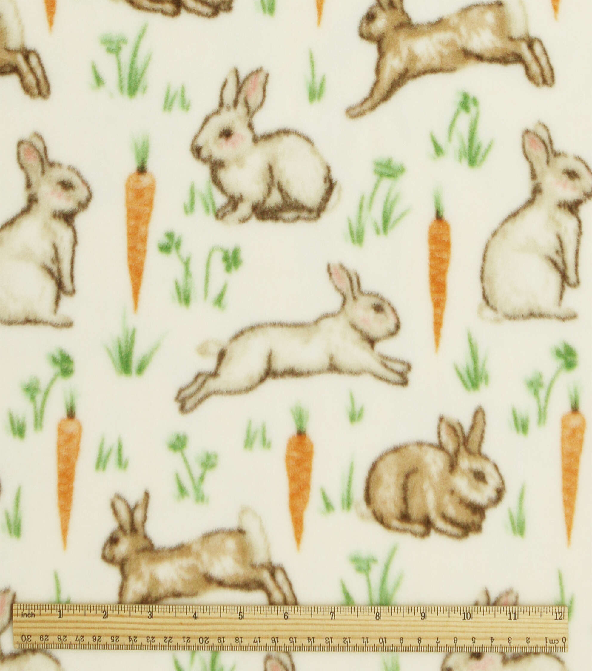 Get Comfy with Hopping Bunnies on Cream Anti Pill Plush Fleece Fabric