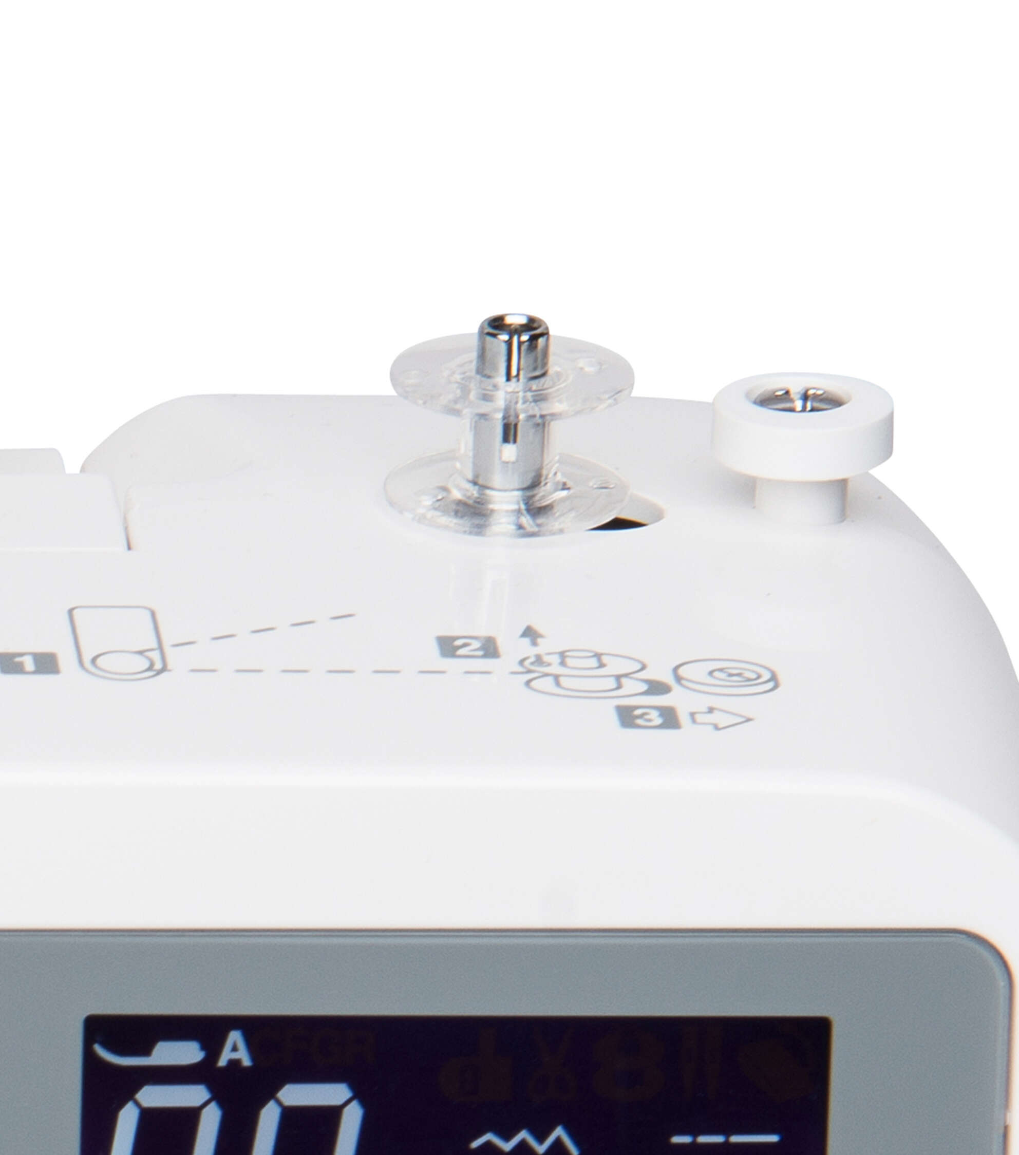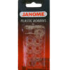 Janome has specially made bobbins that perform best in our machines. There is a patented recipe involving rubber added to the clear resin which improves performance and reduces noise. Imprinted with the letter J.