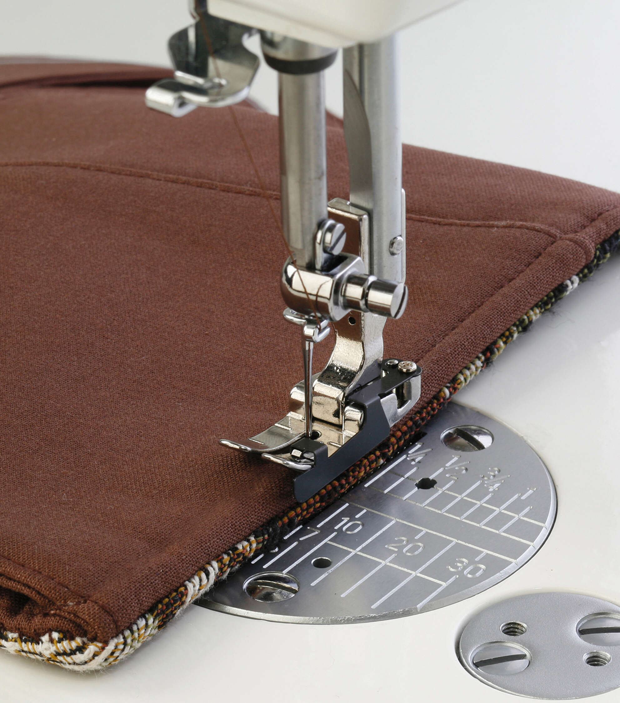 A popular foot with patch workers for that essential 1/4 inch seam. The guide on the foot enables you to sew a perfect 1/4 inch seam every time. The guide can also be used wherever a 1/4 inch seam is called for but the markings on the needle plate cannot be used, such as when completing a flat seam.