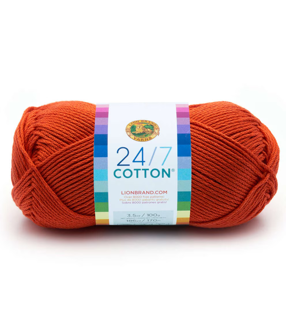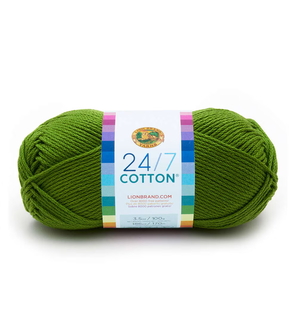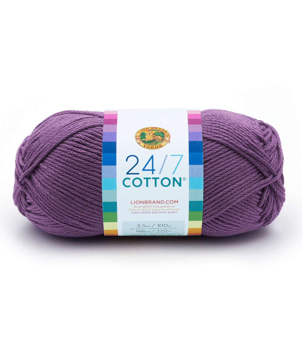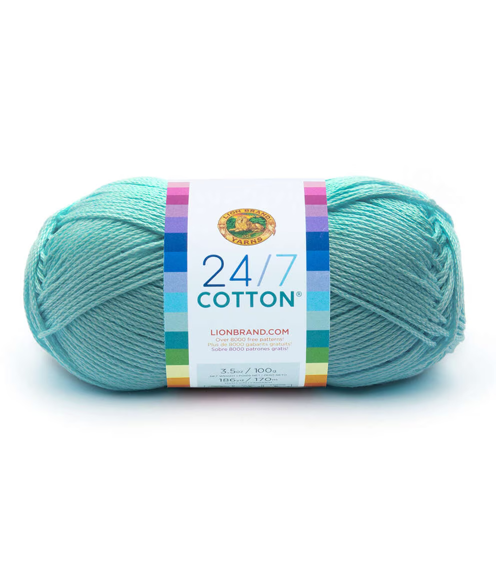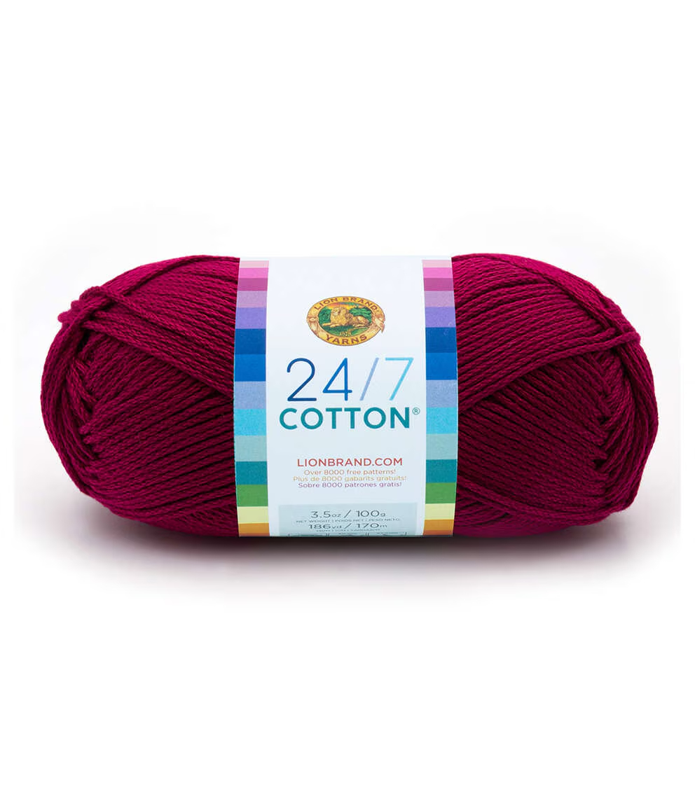 Create lovely knit or crochet projects using the Lion Brand 24/7 Cotton Yarn. This 100% worsted-weight, mercerized natural fiber yarn is easy to care for and comes in a variety of colors for you to choose from. Knit or crochet lovely wearables, baby garments, home decor, kitchen accessories and lots more with this lovely cotton yarn. Mix and match colors to add more vibrancy to your projects.