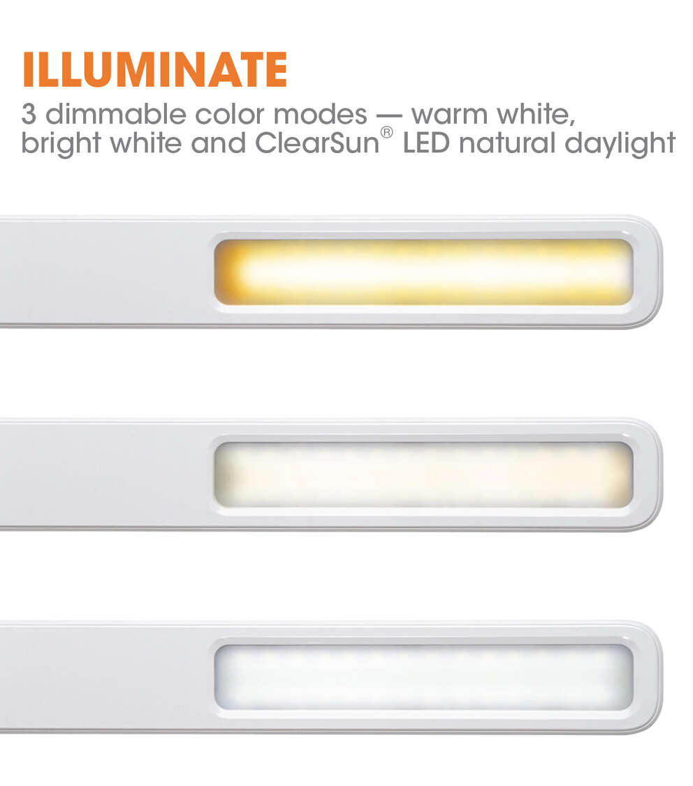 - Proprietary, exclusive OttLite ClearSun LED – reduces eyestrain by 51%