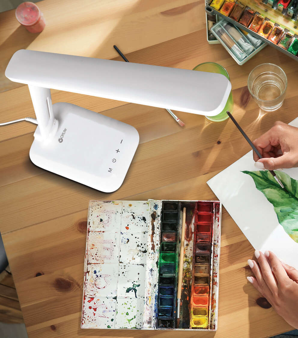 See every color and detail with ease with the OttLite Slimline LED Desk Lamp. Trusted by people who love to sew and craft, OttLite’s exclusive ClearSun natural daylight LED technology has a color rendering index of 95+ so you can select and match colors with total confidence. The Slimline LED Desk Lamp also features two additional color modes – warm white and bright white. With 5 brightness levels, select the brightness level that works best for your space. This sleek design features two points of adjustment so you can change position as you work from a height of 19 inches to 5 inches.