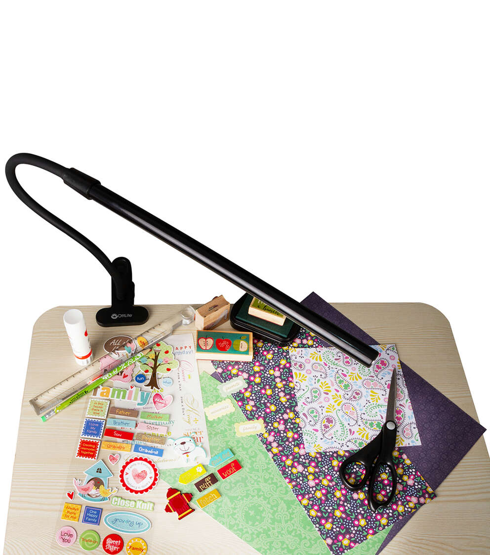 Great for easels, computer desks, bookshelves, dorm rooms and so much more, the OttLite Clip-On LED Easel Lamp provides 12.6 inches of ClearSun LED illumination on a flexible 16.6-inch neck with sturdy spring-loaded clip. The flexible yet strong neck holds position and is easy to adjust and move as you work. Exclusive to OttLite, natural daylight quality ClearSun LED illumination reduces eyestrain by up to 51% so you can read, work, create and study with more clarity and comfort. Great for painting and detail work, OttLite’s ClearSun LED technology has a CRI (Color Rendering Index) of 95+ so you can see every color and detail accurately.