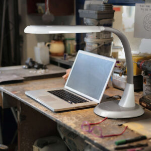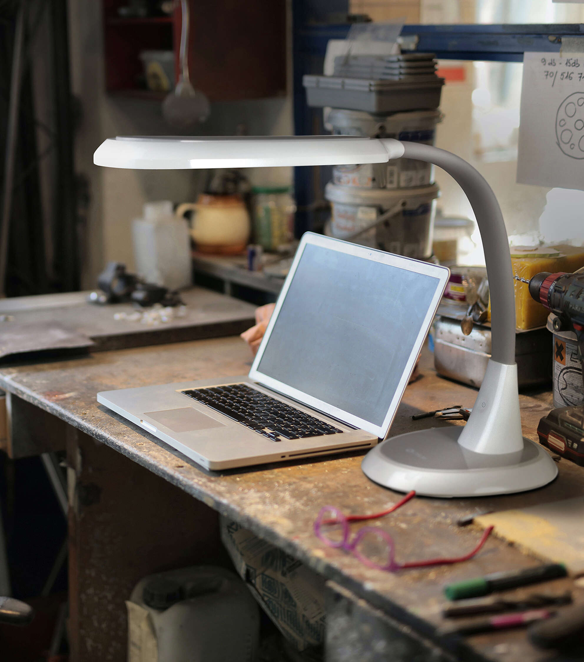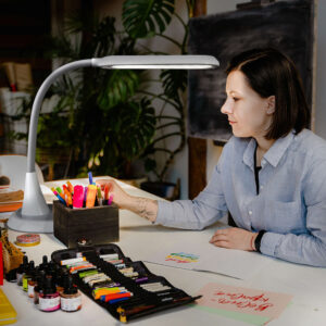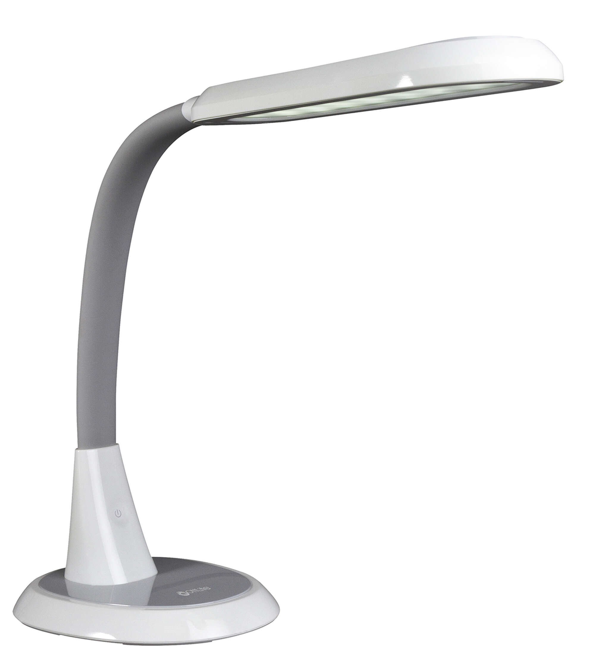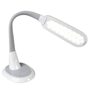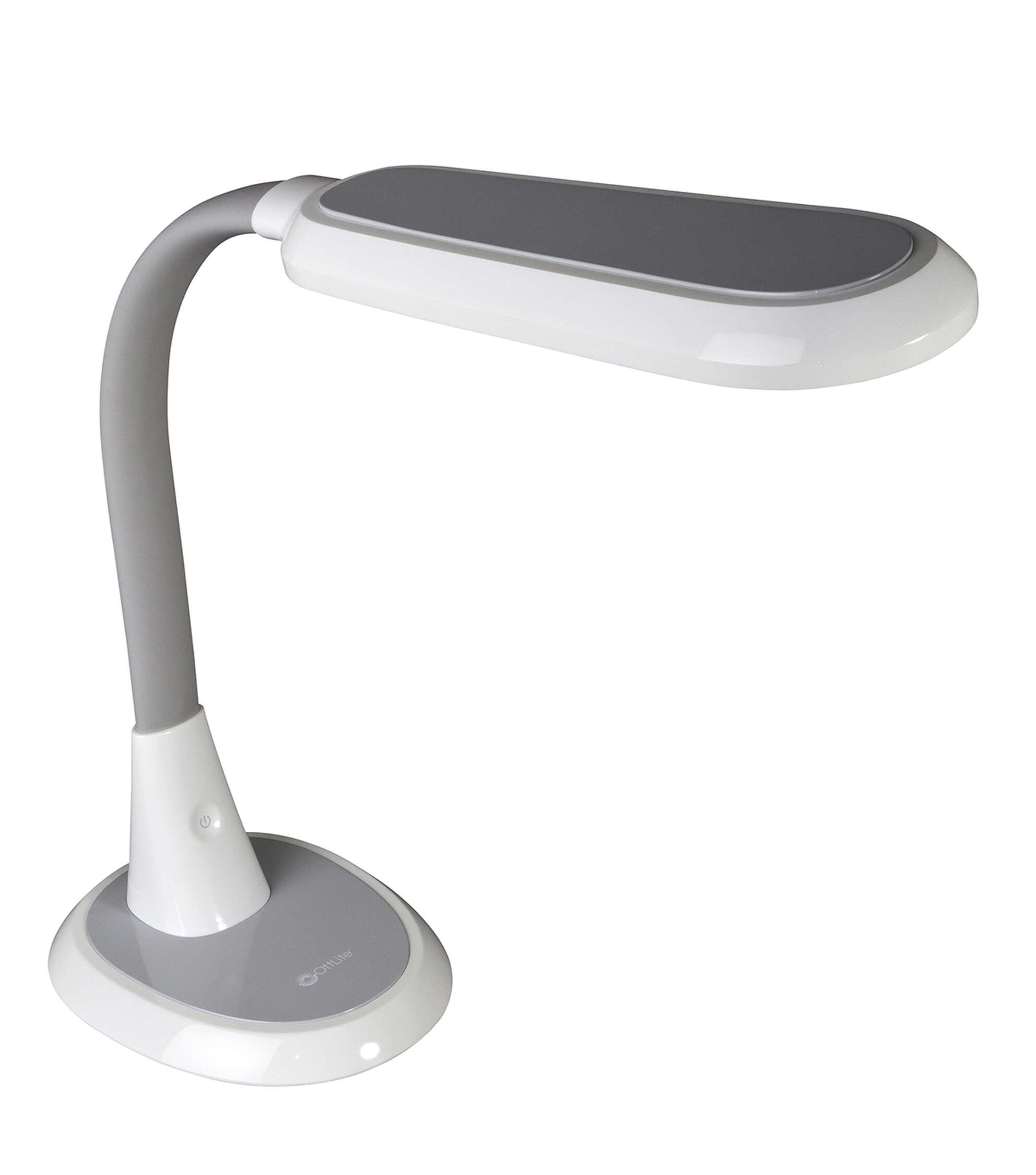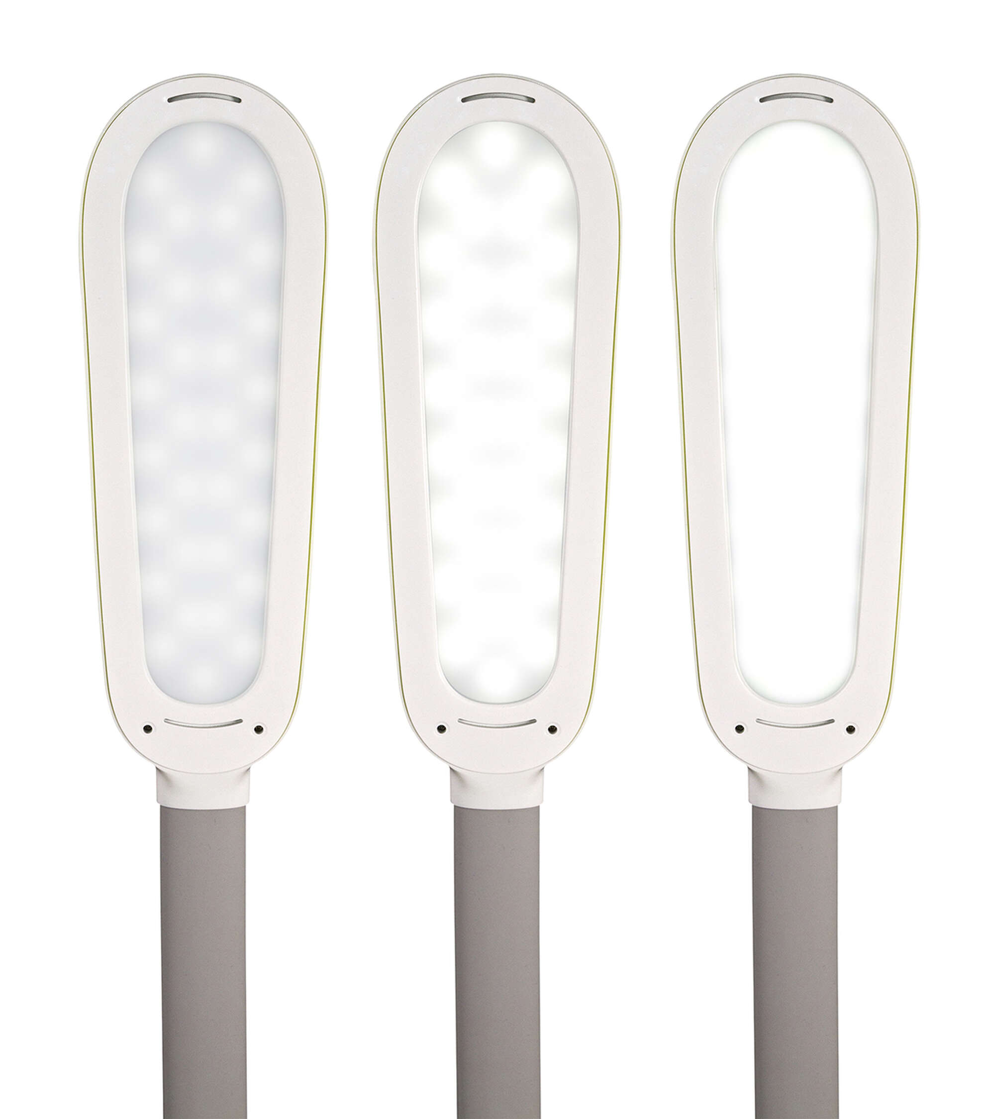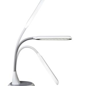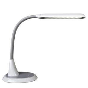 Perfect for large workspaces and big projects, the OttLiteLite Wide Area Dimmable LED Table Lamp delivers expansive ClearSun LED illumination that shows colors true to life and helps reduce eyestrain for hours of visual comfort. The wide shade measures 12 x 4 inches with three brightness levels to deliver just the right amount of OttLiteLite’s ClearSun illumination for your space. Use at full height of 27 inches to cover a large area; or bend the flexible neck down to 12 inches for focused, concentrated light, great for tracing, jewelry making and detail work. OttLiteLite allows you to see details clearly and colors accurately, helping you do what you love, longer.