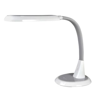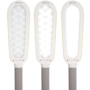Perfect for large workspaces and big projects, the OttLiteLite Wide Area Dimmable LED Table Lamp delivers expansive ClearSun LED illumination that shows colors true to life and helps reduce eyestrain for hours of visual comfort. The wide shade measures 12 x 4 inches with three brightness levels to deliver just the right amount of OttLiteLite’s ClearSun illumination for your space. Use at full height of 27 inches to cover a large area; or bend the flexible neck down to 12 inches for focused, concentrated light, great for tracing, jewelry making and detail work. OttLiteLite allows you to see details clearly and colors accurately, helping you do what you love, longer.