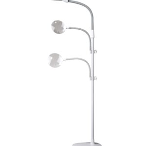See every color true to life and detail clearly with this OttLite floor lamp featuring eyestrain-reducing ClearSun LEDs and a 1.75x magnifier. Bend and flex as you work with the flexible yet sturdy arm that adjusts the height from 47.5 to 64 inches. With the touch sensitive controls select from three brightness levels to provide just the amount of light you need for your work space. The optical grade magnifier on a flexible arm is rimless for uninterrupted viewing and includes a 3x spot viewer perfect for threading needles and precise detail work. Great for sewing tables, next to your favorite knitting or embroidery spot or a home office.