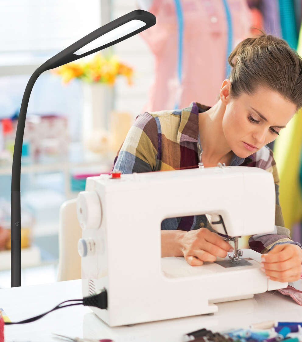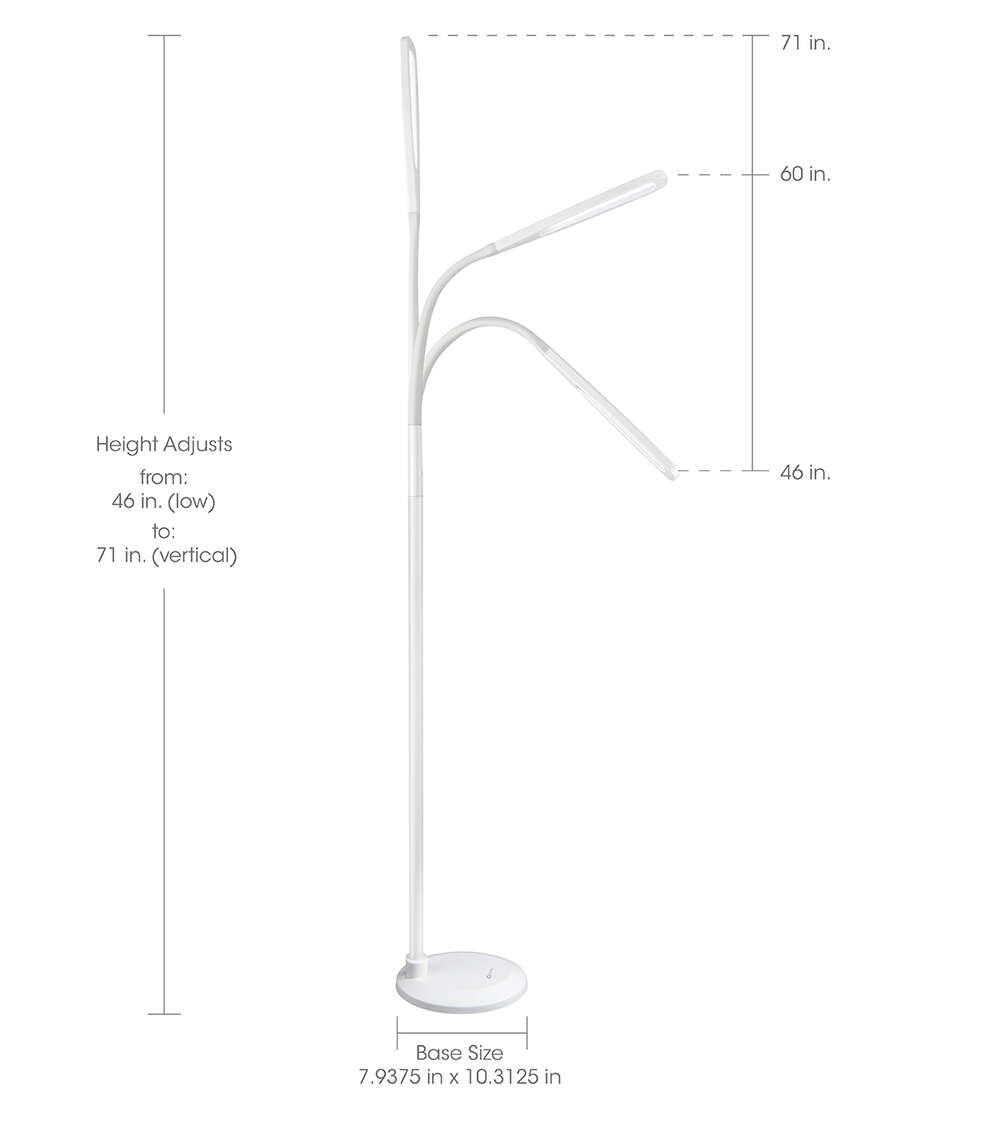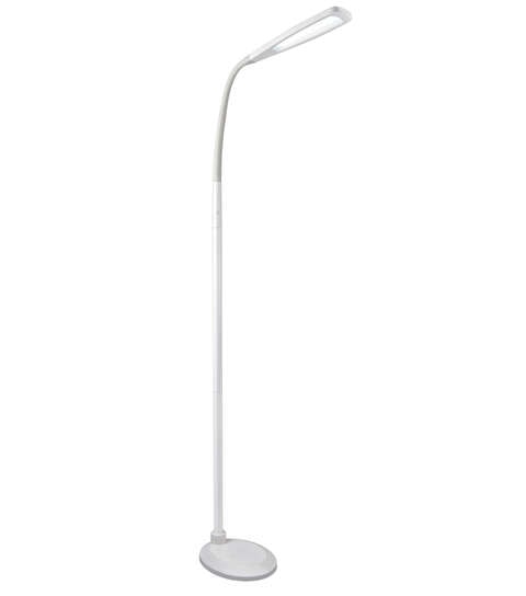 The OttLite Natural Daylight LED Flex Floor Lamp-White helps you see details clearly and colors accurately, whether reading in your favorite chair or sewing in your sewing room. An expansive 12.5-inch shade and rubberized flexible neck allows you to direct the powerful OttLite Natural Daylight LED Illumination right where you need it. Touch-activated controls adjust the brightness levels and the smart memory feature remembers your last brightness setting. With this OttLite lamp you can see details clearly and reduce glare and eyestrain so you can do what you love, longer.