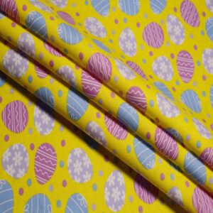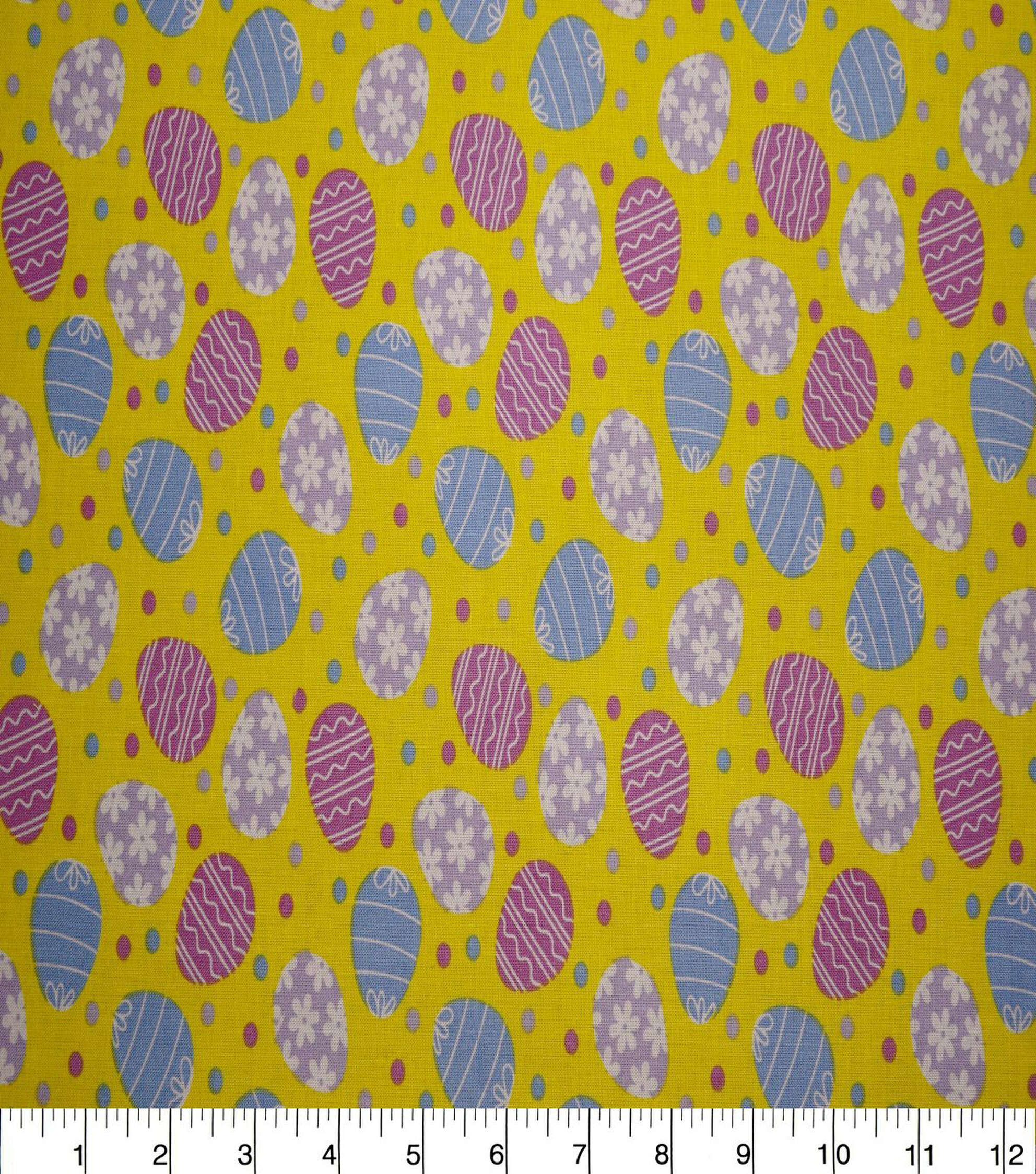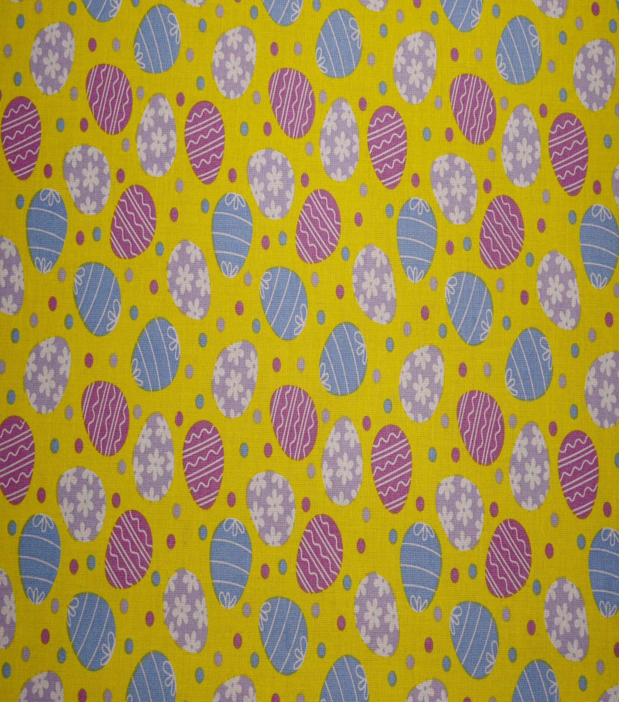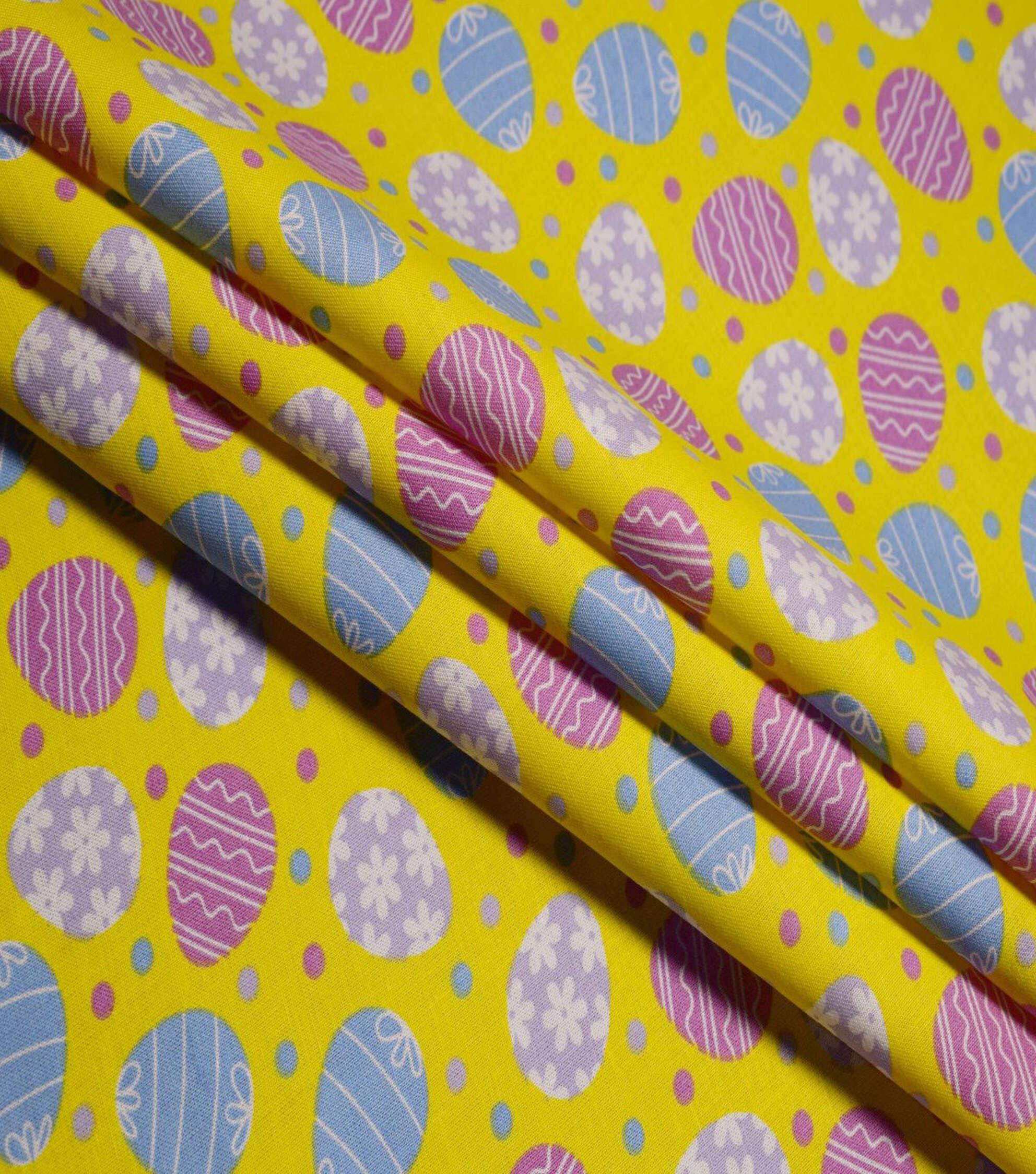 Patterned Eggs on Yellow Easter Cotton Fabric