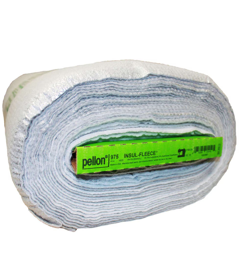 Pellon 975 Insul-Fleece is a polyester fleece blend which reflects heat or cold back to the source to help retain desired temperature. It insulates to keep hot things hot and cold things cold for a longer period of time than traditional fleece. It is soft and comfortable with a medium loft; which makes it versatile for home decor, kitchen accessories, and clothing. 975 can be easily sewn through and once your project is finished it can be machine washed and dried. Warning: 975 Insul-Fleece® is not heat proof or fire resistant. Not for use in the microwave.