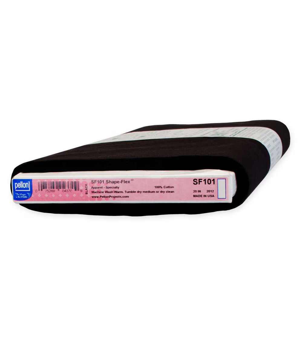 Pellon SF101 Shape-Flex-Black is an all purpose, woven, fusible interfacing. It provides crisp support for collars, cuffs, yokes, pockets, facings, and other detail areas of a garment. It can also add body and permanent stability when used as a backing for needlework and punch embroidery. This 100% cotton fusible interfacing is intended for light to medium woven and knit fabrics, including oxford cloth, chambray, gingham, madras, tattersall, pincord, flannel, and polyester/cotton blends.