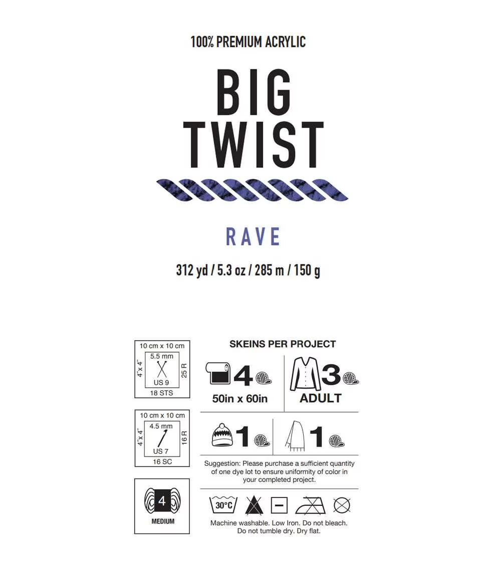 Rave 312yds Worsted Acrylic Yarn by Big Twist