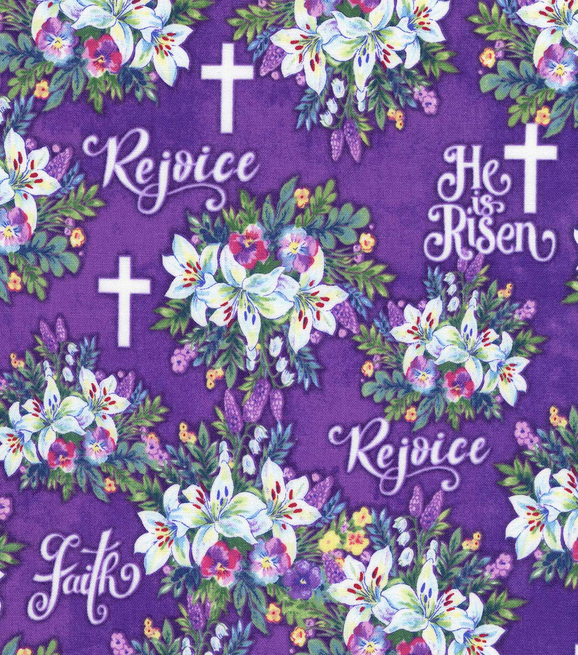 Robert Kaufman He Is Risen Purple Easter Cotton Fabric
