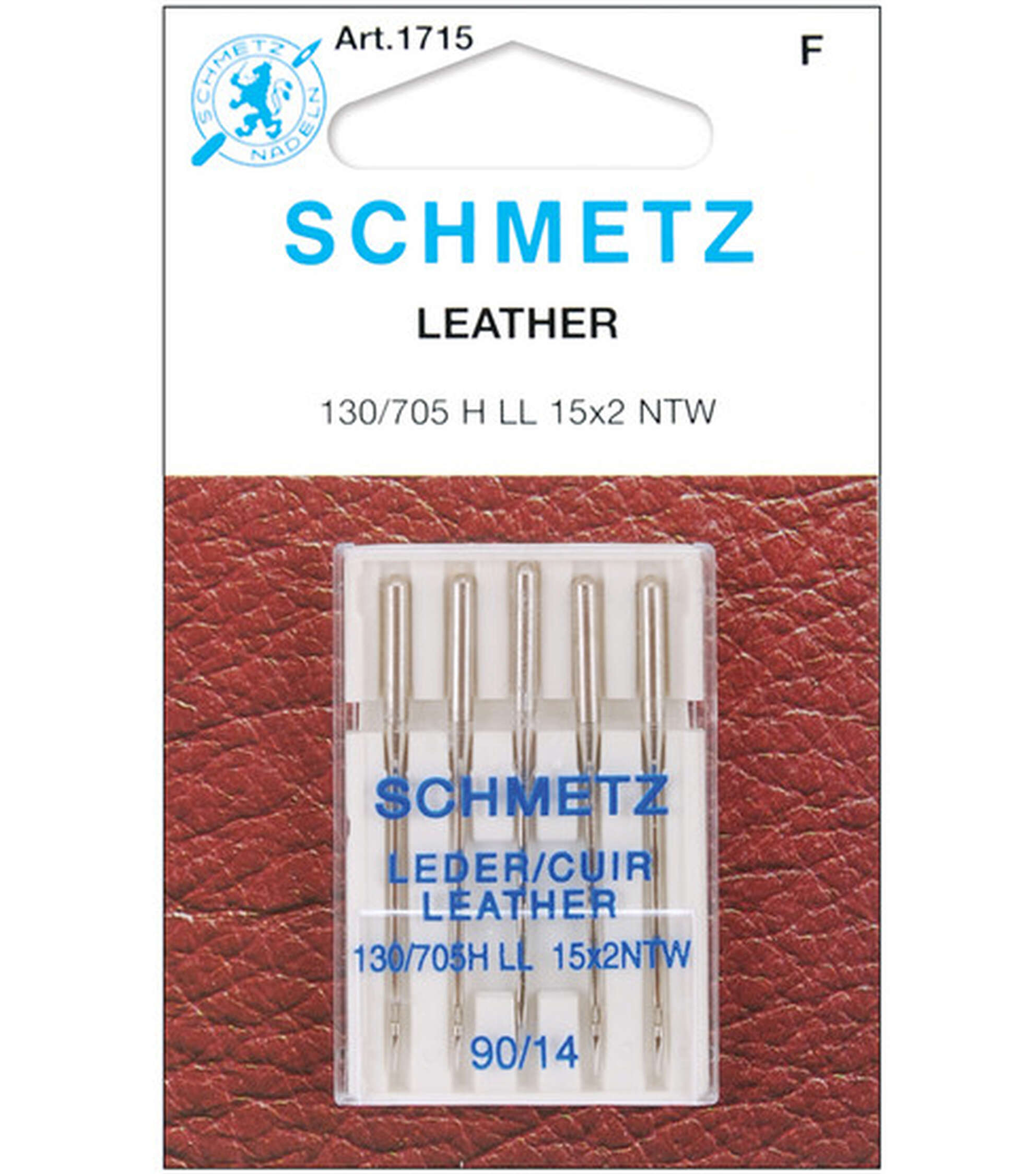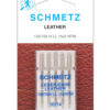 The Schmetz Leather Machine Needles are specially designed for use in leather-based sewing projects. These machine needles are designed with sharp knife-edge points that can easily pierce through leather, artificial leather and heavy non-woven synthetic material. Use them to create stylish leather apparel, caps, fabric totes and more. This pack includes five needles in size 90/14.