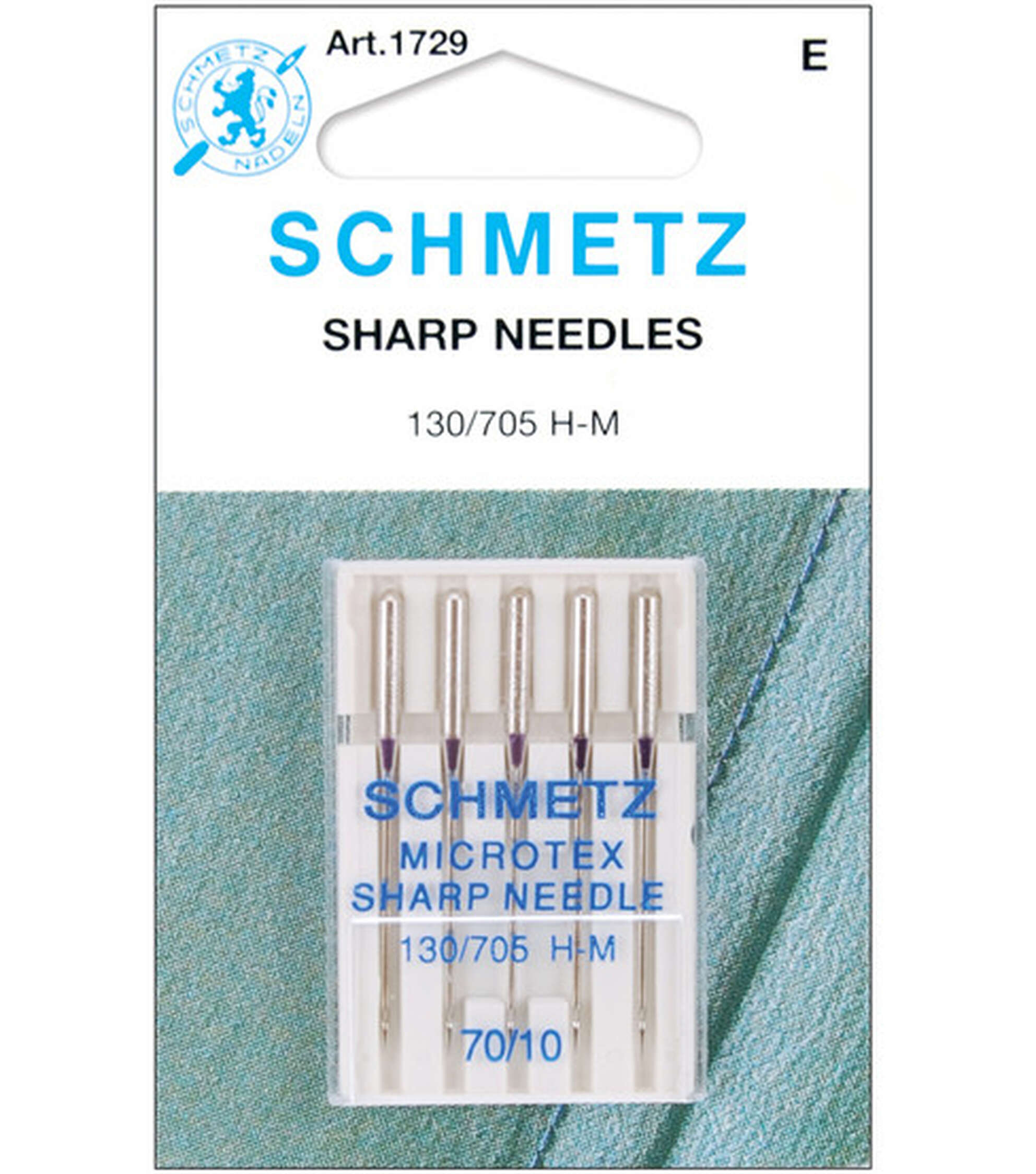 Use the Schmetz Microtex Sharp Machine Needles to give a finishing touch to apparel and creative projects. These finely crafted needles are ideal for creating pintucks and straight stitches. They are compatible with most sewing machines and can be used to weave all kinds of fabrics. This pack includes five needles in size 70/10.