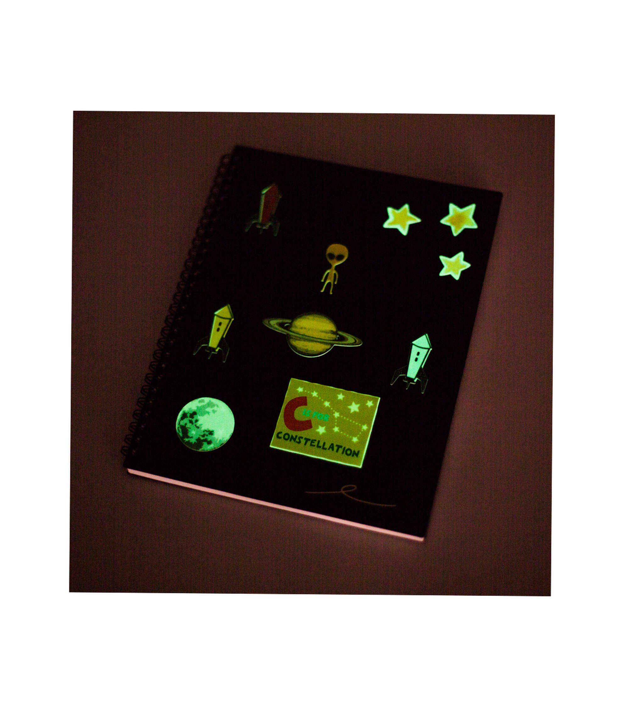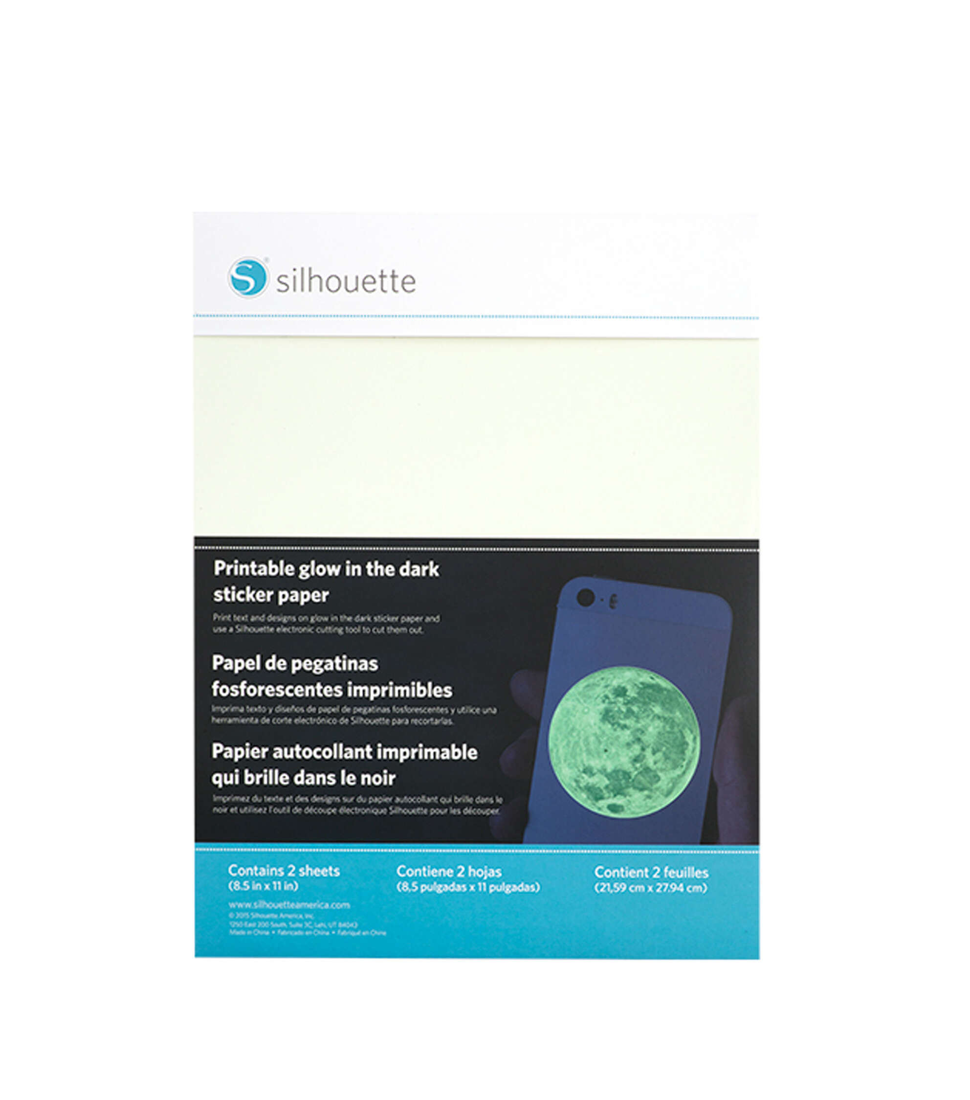 Create specialized cut-out shapes, such as stars to put on your ceiling, or make fun printed stickers that glow in the dark using Glow-in-the-Dark Sticker Sheets. This material has a printable surface and an adhesive backing. Simply print an image onto the Glow-in-the-Dark Sticker Sheet and then cut out around the contour using the Silhouette cutting machine’s Print & Cut feature.