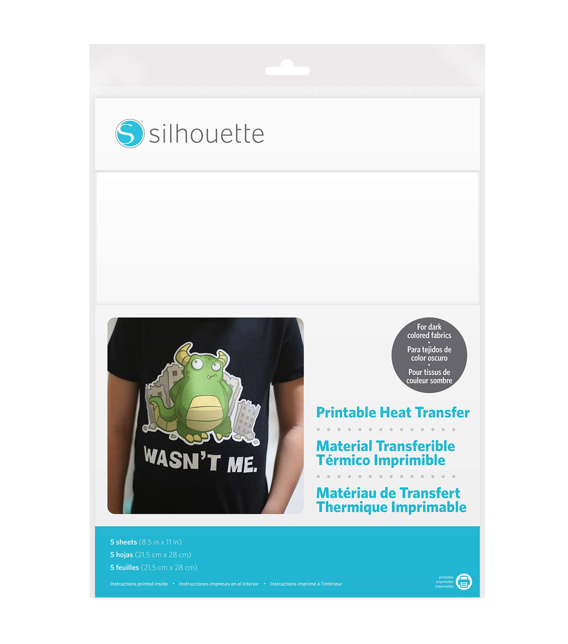 Use Printable Heat Transfer for dark fabrics on dark fabric surfaces. Print an image and cut out around the contour using the Silhouette cutting machine’s Print & Cut feature. You can then iron your custom image onto a fabric surface, such as a t-shirt. This material remains solid when ironed and so is suitable for all colors of fabric.