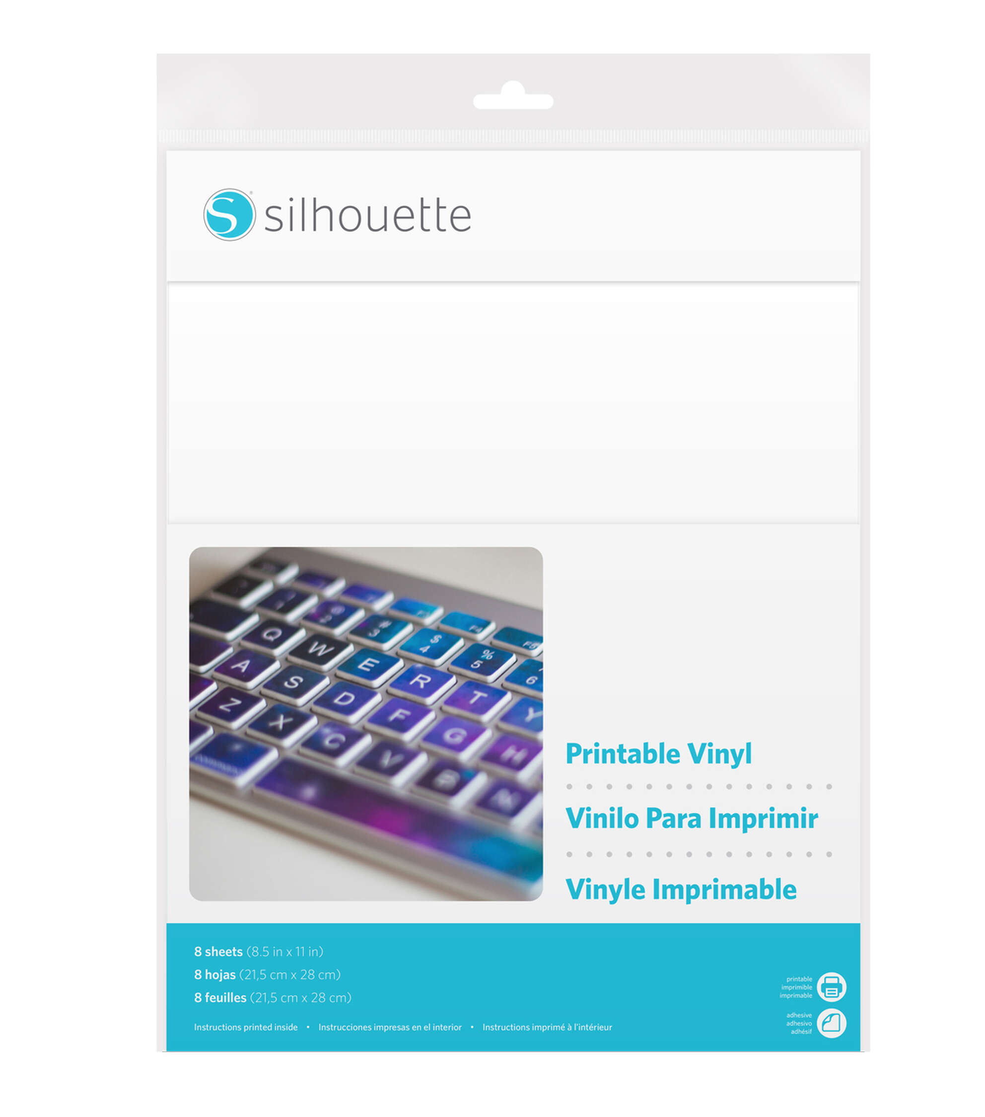 Personalize your indoor creative projects, by printing fun designs using the Silhouette of America 8.5” x 11” Printable Vinyl Sheets with your Inkjet printer. This pack contains eight, 8.5 x 11-inch, white sheets of printable vinyl material with semi-permanent, removable adhesive backing. They’re designed for use with the Silhouette Cameo, Silhouette Portrait, and Silhouette Curio (requires large base). You can print an image and cut out around the contour using the Silhouette cutting machine’s Print & Cut feature.