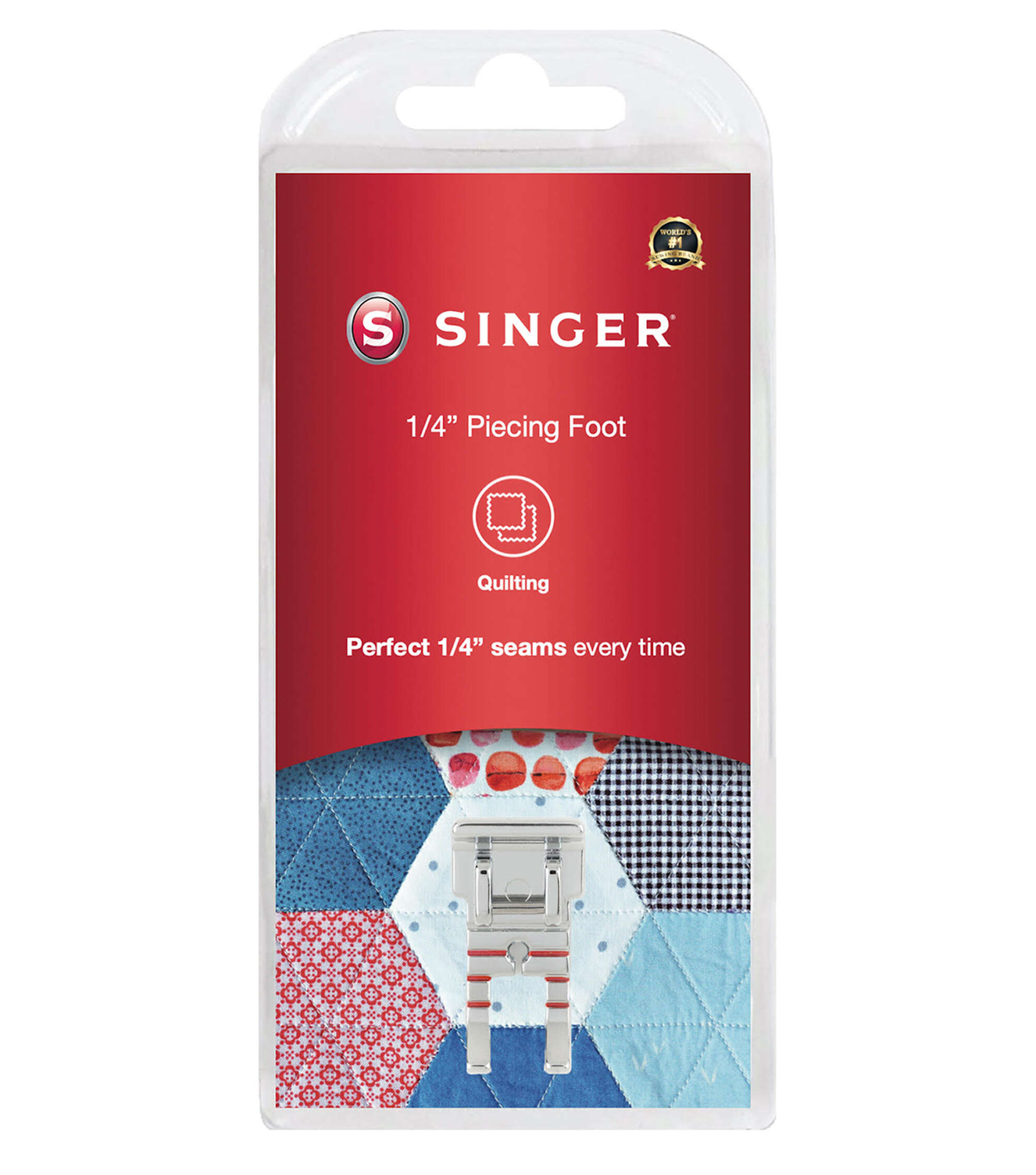 The Singer Sewing Piecing Foot is just what you need for sewing perfect 0.25-inch seam allowances. This piecing foot can also be used for small projects with narrow seam allowances like baby clothes and doll clothes. It comes with red guidelines on the foot to help you accurately pivot corners.