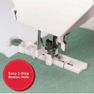 - Automatic One-Step Buttonhole – Just place the button in the buttonhole foot and the machine sews a buttonhole perfectly sized for that button, delivering consistent results every time.