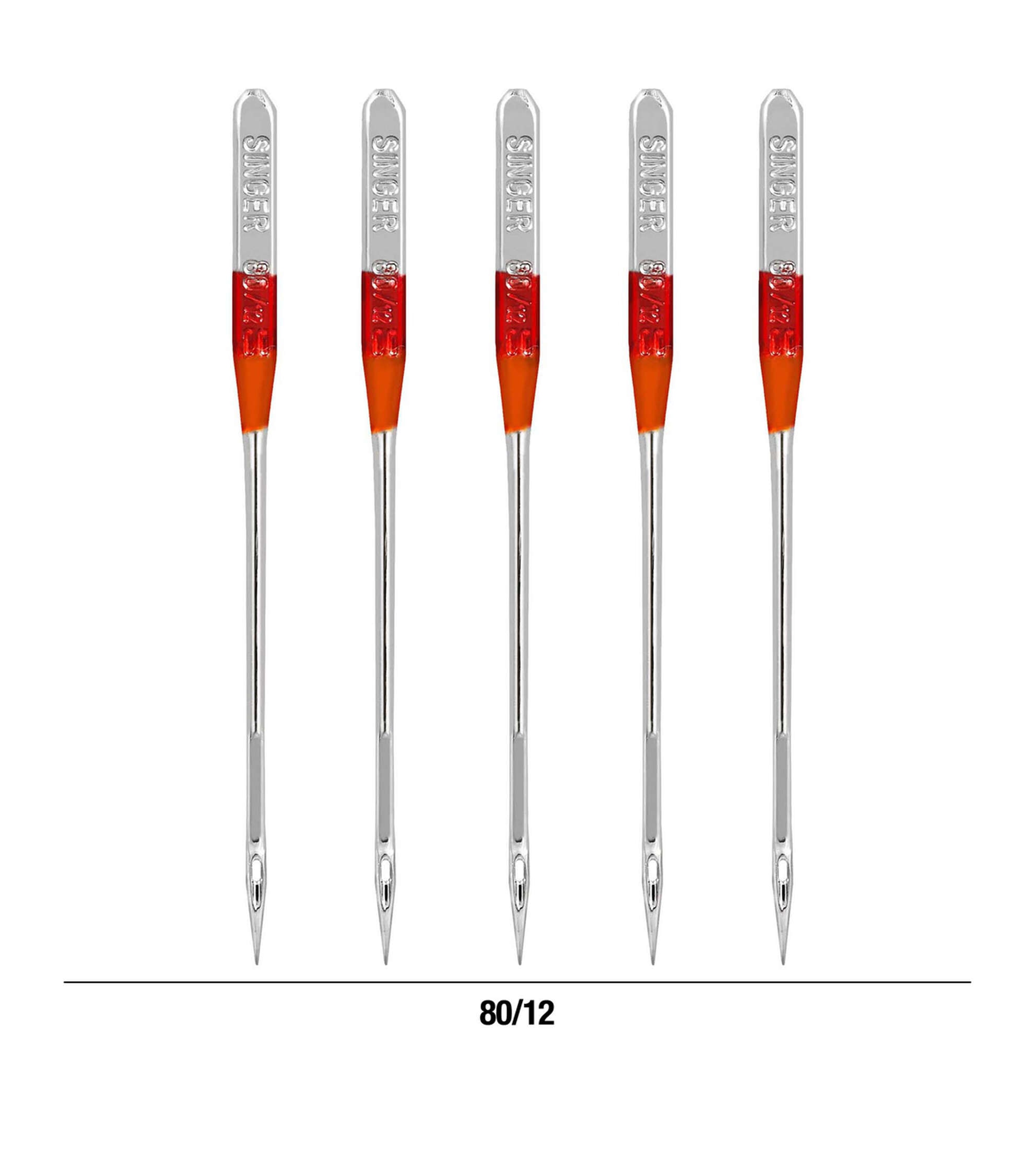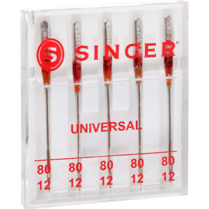 - SINGER Universal regular point needles in size 80/12 are designed for standard stitching performed by a domestic sewing machine. Universal needles are best for lightweight woven fabrics. Needles can be used by SINGER, Brother, Kenmore and other quality sewing machines. The 5 machine needles come in a convenient plastic case with individual storage slots and sizes marked on the clear cover. Domestic machine needles are not applicable to industrial or handheld sewing machines.