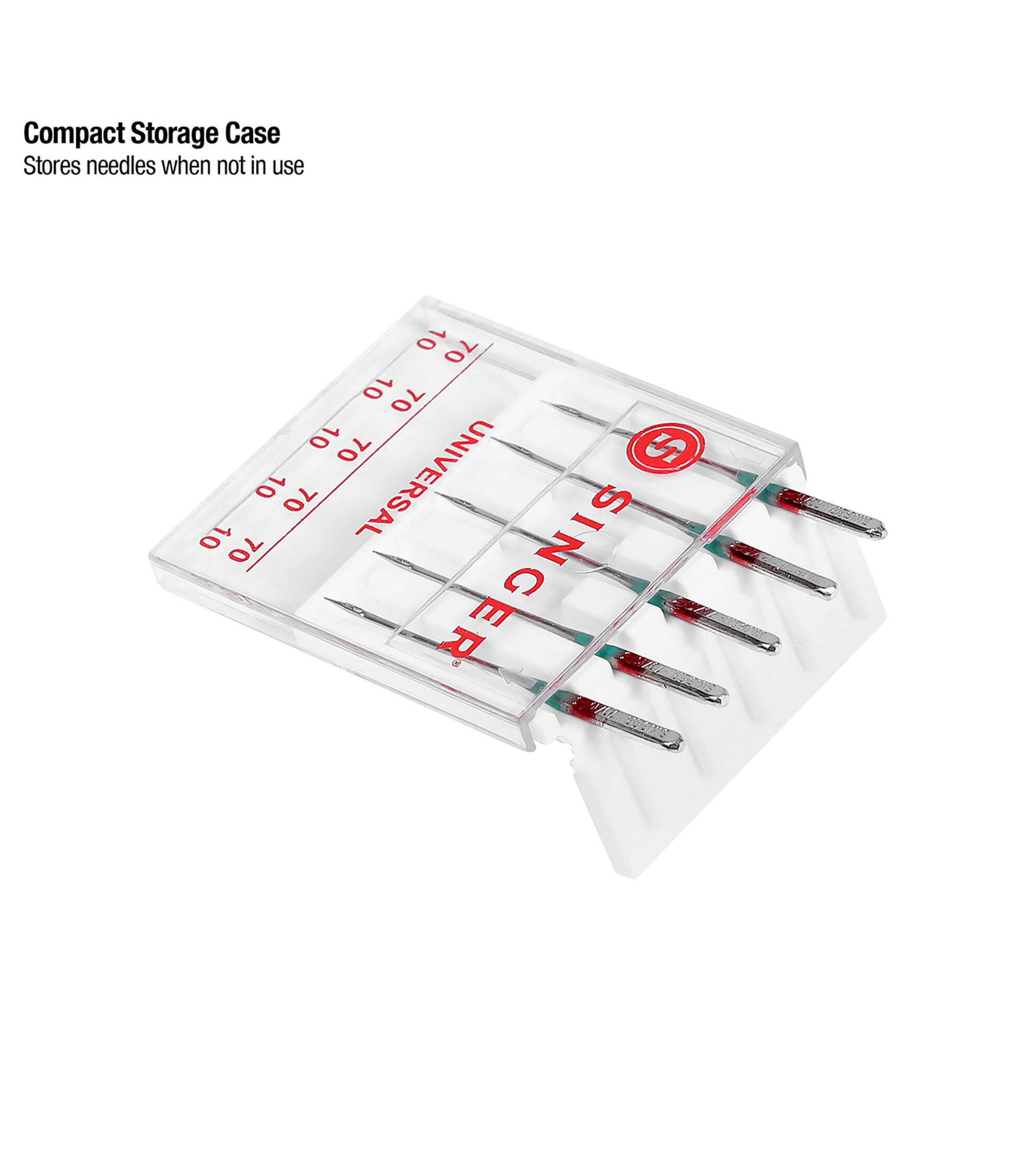- SINGER Universal regular point machine needles for sewing projects using medium weight woven fabrics. Compatible with SINGER, Brother, Kenmore and other quality sewing machines, these all-purpose needles are made of durable stainless steel and designed for basic stitching projects. Pack includes 5 size 90/14 needles. Needles are blue for size recognition and come in a labeled compact case. Domestic machines needles are not compatible with industry sewing machines.