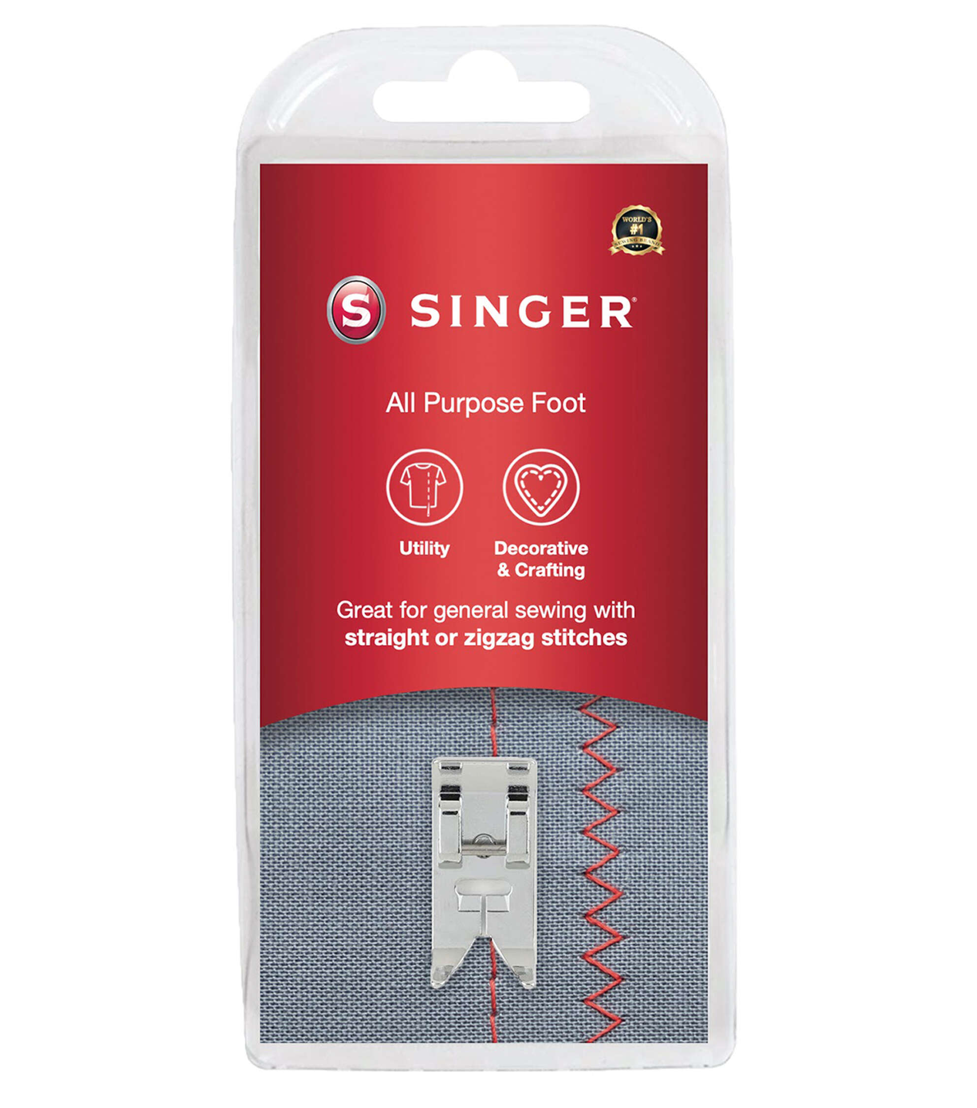 The Singer All Purpose Presser Foot is ideal for general sewing on most types of fabric. It comes with a wide needle opening that allows for the sewing of stitches up to 7mm in width or straight stitching with the needle in various positions. A flat underside holds the fabric firmly in place. This all-purpose foot can also be used for elastic insertion and mending.