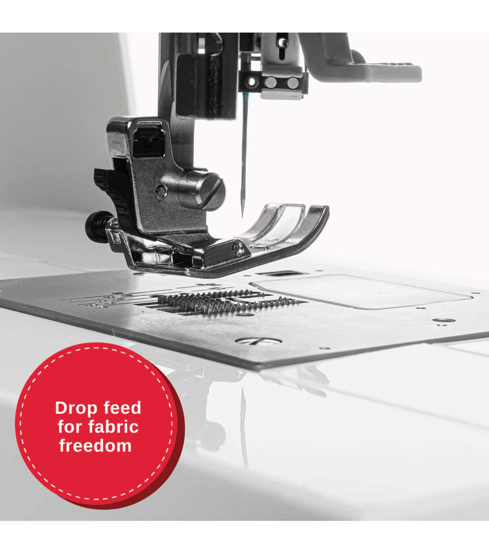 - FEED TEETH-With the slide of a lever, feed teeth can be lowered for button sewing or free-motion sewing – a must-have for quilters!