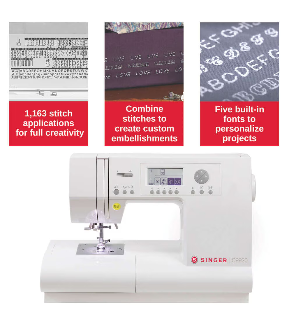 Quiet, Smooth, Sturdy, Easy-to-use, Endless Creative Possibilities…these are a few of the words that sewists are using to describe the SINGER C9920 computerized sewing machine. It’s no wonder this machine is a favorite! With five different fonts and over a thousand stitch applications, the SINGER C9920 is perfect for creating any type of project. Whether you are customizing a pillow with unique stitch sequences, or adding one of the 13 button-hole styles to a garment, it’s clear that the C9920 brings an exceptional sewing experience. From the ergonomic LCD screen with excellent viewing angles to the many high-end features, we know that even our most discerning sewists would enjoy this sweet sewing machine.
