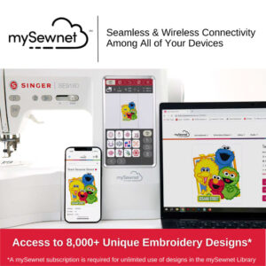 - mySewnet Connectivity- Connect all mySewnet enabled devices to communicate wirelessly between them to transfer designs, monitor your embroidery progress, and access designs through the mySewnet Library on screen.