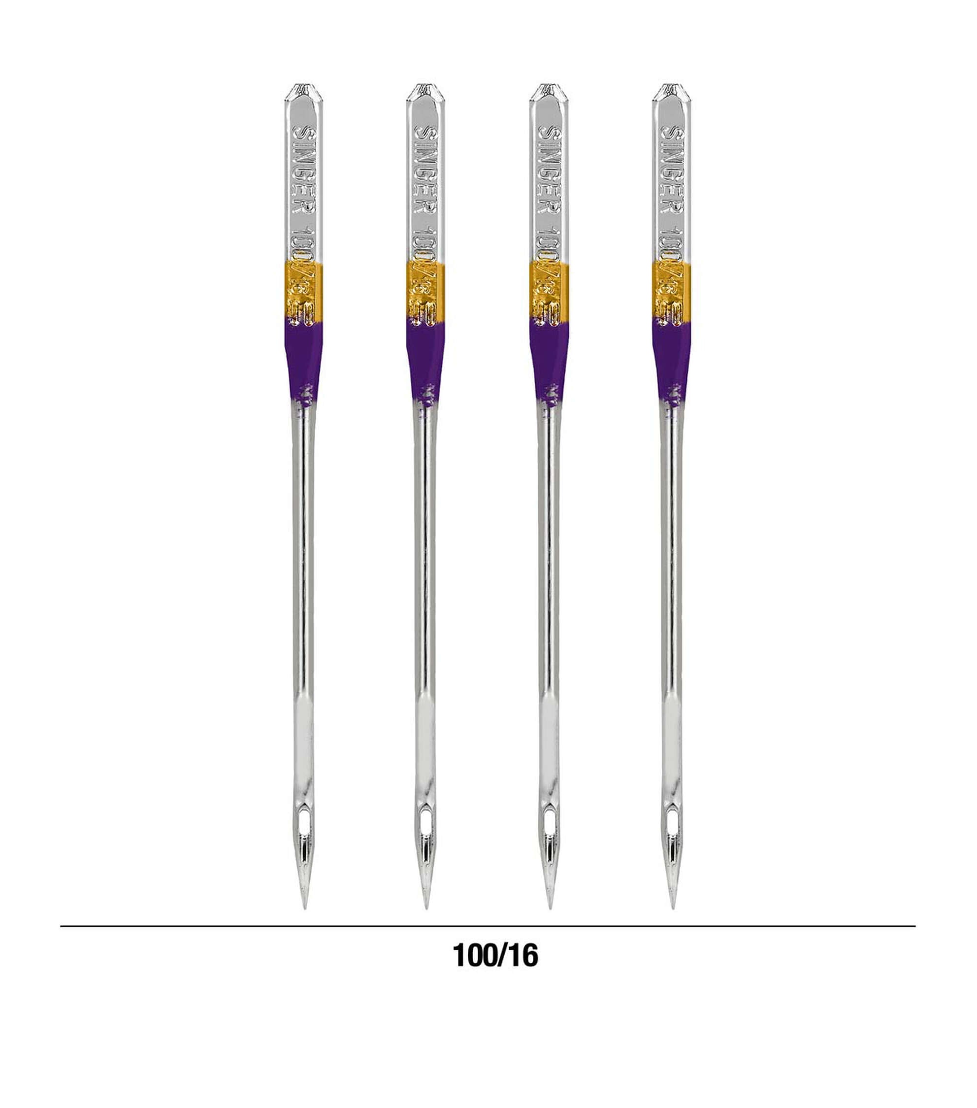 The Singer Universal Ball Point Machine Needles are just what you need when working on medium-weight knit fabrics. These ball point needles are designed to help prevent skipped stiches when working with knits and to avoid holes or runs in knit fabrics. They are compatible with most sewing machine brands including Singer, Brother, Kenmore and other quality sewing machines. Singer color-coded needles make it easy to identify the proper needle size. This pack includes four needles in size 100/16.