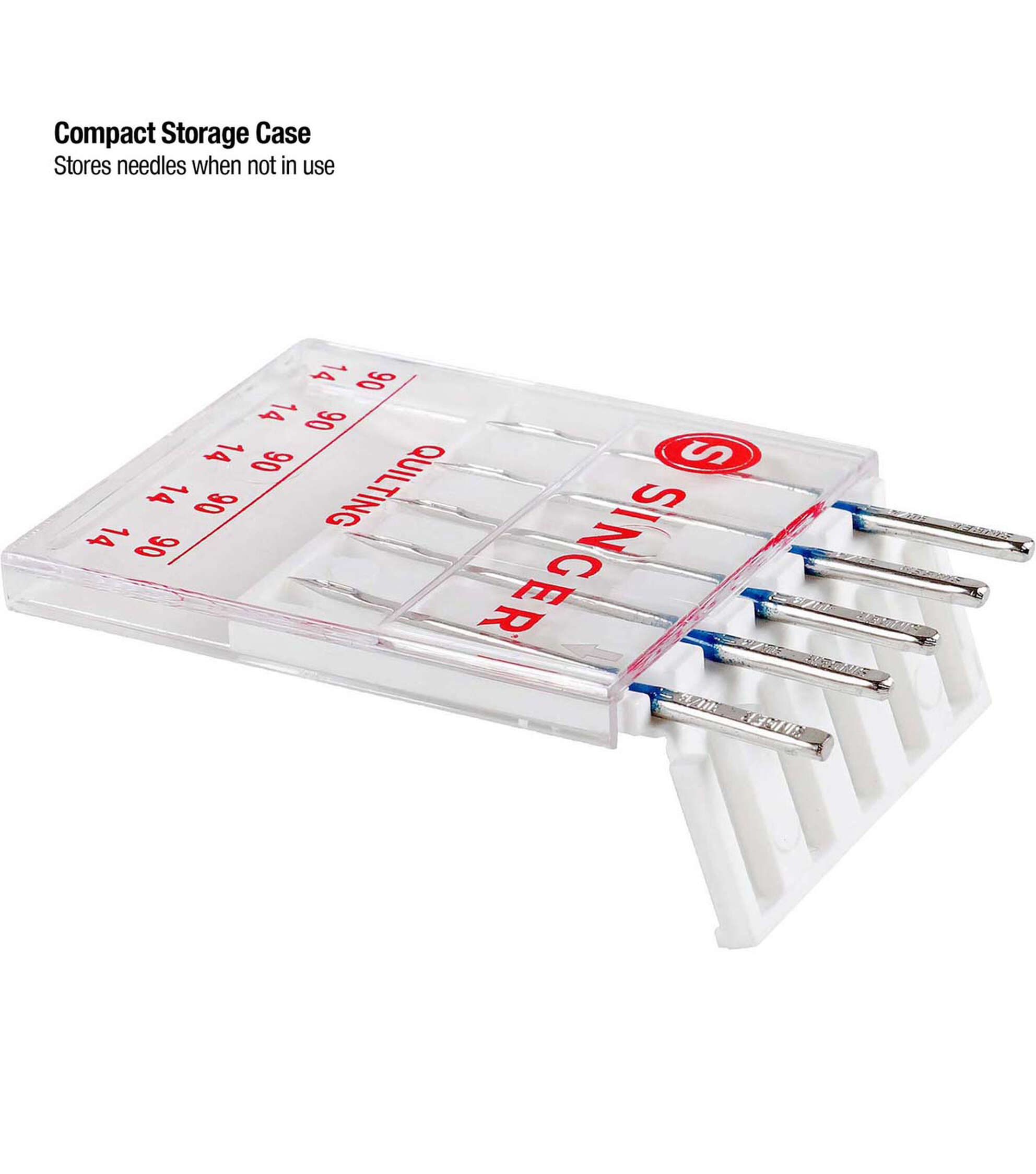 The Singer Universal Quilting Sewing Machine Needles are designed to stitch through multiple layers of fabric and are great for quilting, blanket making and patchwork. These size 90/14 needles are best for lightweight woven fabrics. Designed with a special tapered point, they penetrate multiple layers and prevent damage to the fabrics. They are compatible with Singer, Brother, Kenmore and other quality sewing machines.