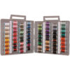 Opt for the Sulky Universal Slimline Storage Box for organized storage of your sewing supplies. Lightweight and sleek, this spool storage box is easy to carry around. For safe storage, this box features an exclusive lifting tab that helps you remove spools with ease while ensuring that the rest don’t fall out. You can clearly view and access spools from this transparent storage box. Arrange the box in a free standing, upright position by opening it partially. Offering ample storage space, this box accommodates around 64 small and large Sulky snap-end spools and the small and next larger size of a range of popular brands.