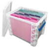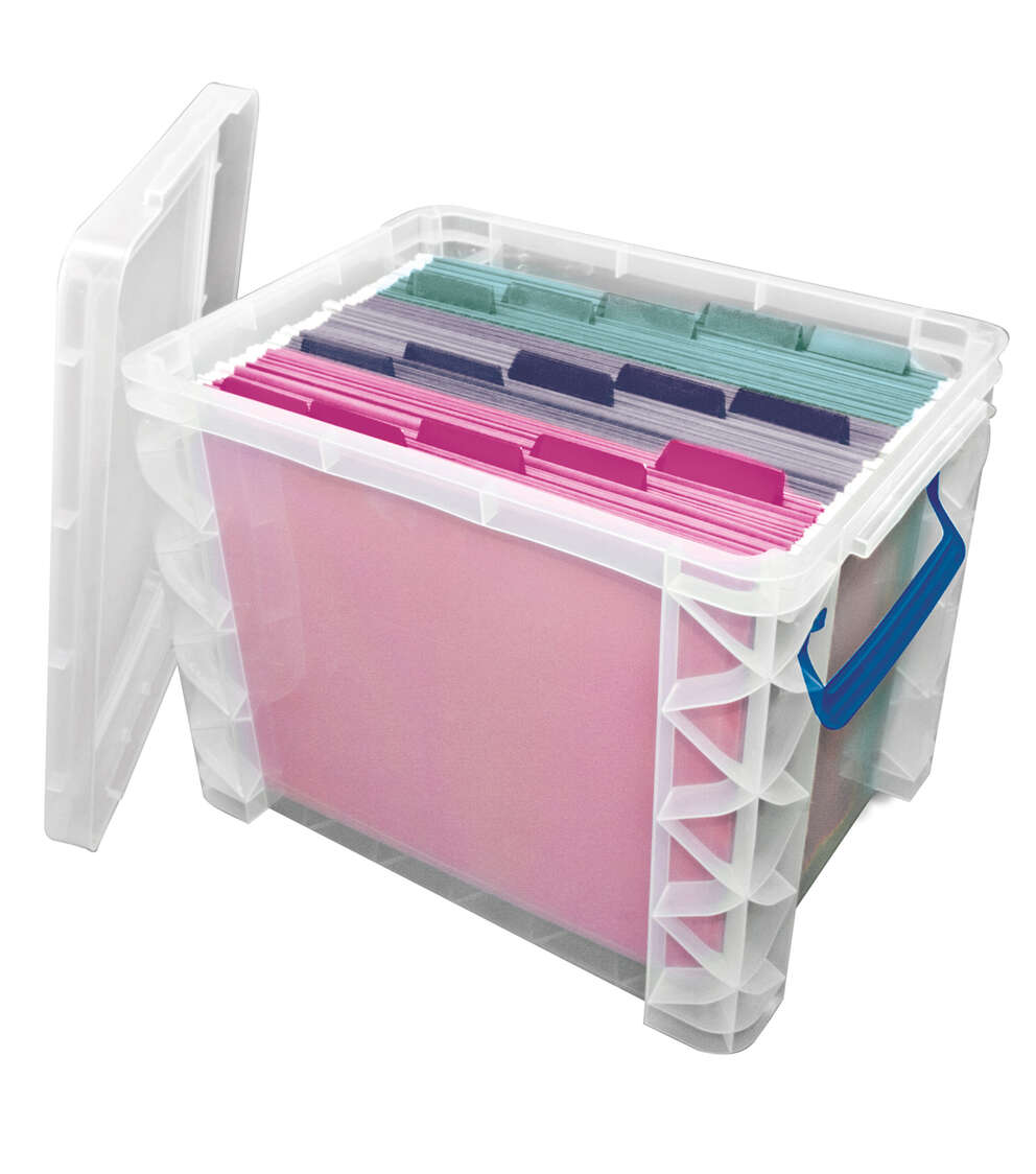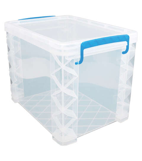 Don’t sweat the small OR big stuff with Super Stacker. This space-saving storage system will bring organizational order to any space. Its stackable design is perfect for use with or without shelving, with a heavy-duty plastic construction that can accommodate large or heavy items. Easy snap-lock handles keep lid in place and contents secure for transport, and fun color variations make it easy to categorize and distinguish contents. Available in a variety of shapes and sizes.