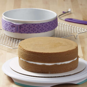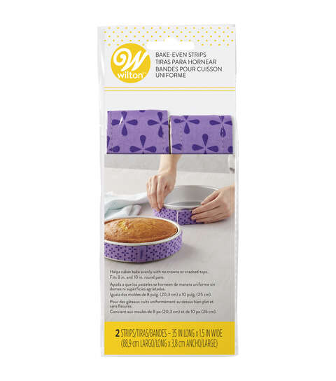 WILTON-Bake Even Strip Set. Bake moist; level cakes every time with no crowns; cracked tops or crusty edges! This package contains two 35×1-1/2 inch long strips. Imported.